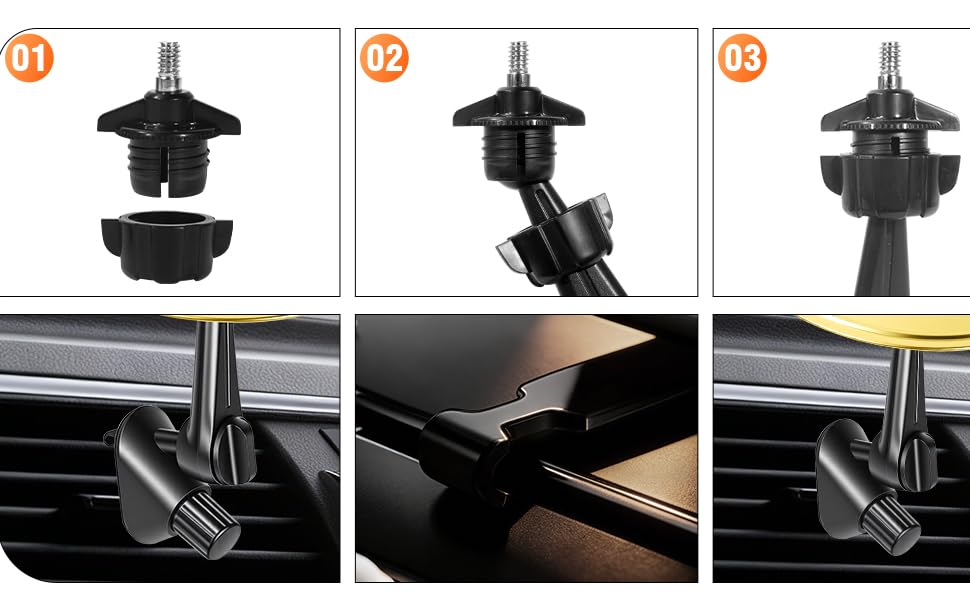 • تصميم فتحة تهوية الهواء الصنجية السريعة للسيارة: يتم تركيب الطبل الصغير بفتحة تهوية الصنج للسيارة في ثوانٍ. ما عليك سوى تثبيته على فتحة التهوية أو لوحة القيادة - دون الحاجة إلى أدوات. ملاءمة ثابتة للقيادة اليومية وسهولة التعديل.