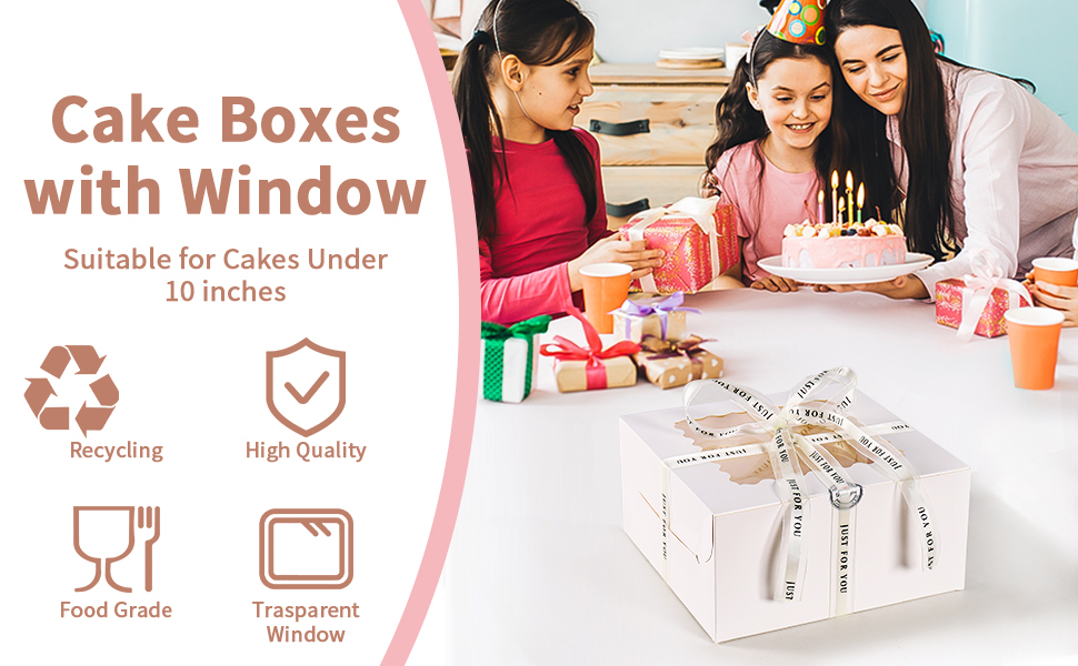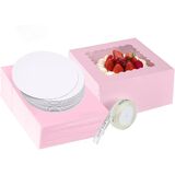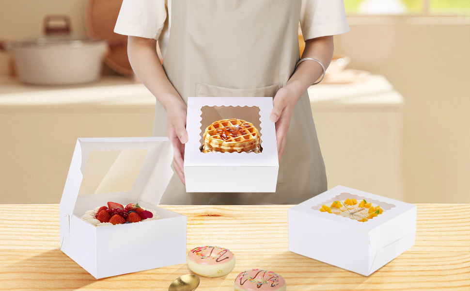 تصميم رائع: تسمح النافذة المتموجة الشفافة والشفافة في الأعلى برؤية الحلويات الرائعة والرائعة بالكامل، وتنزلق الكعكة داخل الصندوق من الأمام لإكمال تجميع صندوق الكيك العشرة.