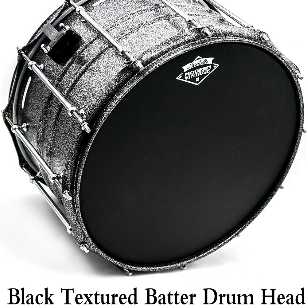 🛡️ Built to Last – Durable Matte Black Finish Resists Wear & Stains: Unlike standard white coated heads, this black matte textured snare head hides stick marks and scuffs, keeping your kit looking stage-ready set after set. The sandblasted coating is engineered for marching band snare head levels of durability, resisting denting and peeling even under heavy use.