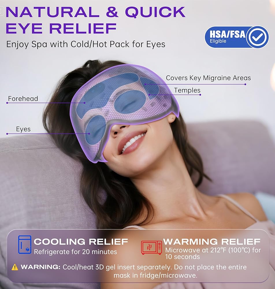 قناع العين الدافئ والبارد: استخدمي قناع العين الموزون دافئًا لاسترخاء عضلات العين المتوترة أو باردًا لتقليل الانتفاخ وتهدئة العيون المتعبة. مثالي للانتعاش الصباحي أو الاسترخاء أثناء النوم