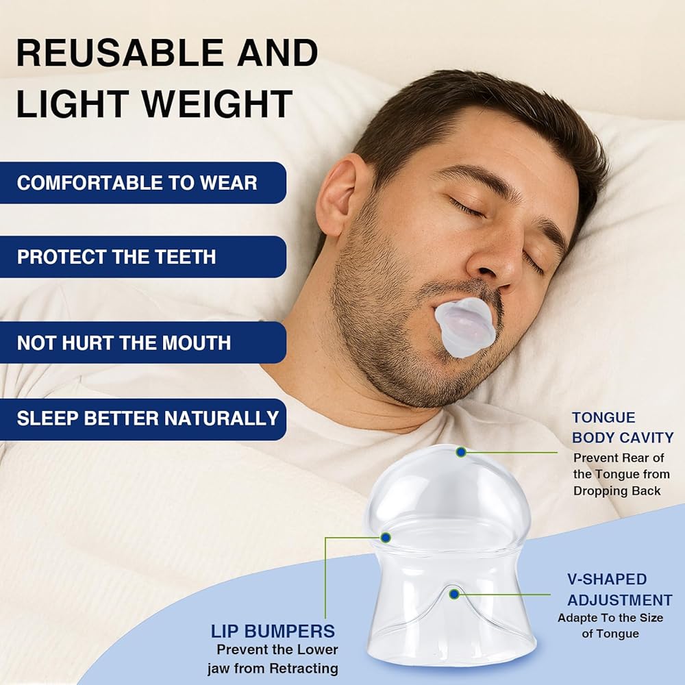 - حل الشخير: يوفر جهاز الشخير هذا حلاً مباشرًا عن طريق تثبيت لسانك بلطف في وضع للأمام، مما يبقي مجرى الهواء العلوي مفتوحًا بشكل فعال ويقلل الشخير.
