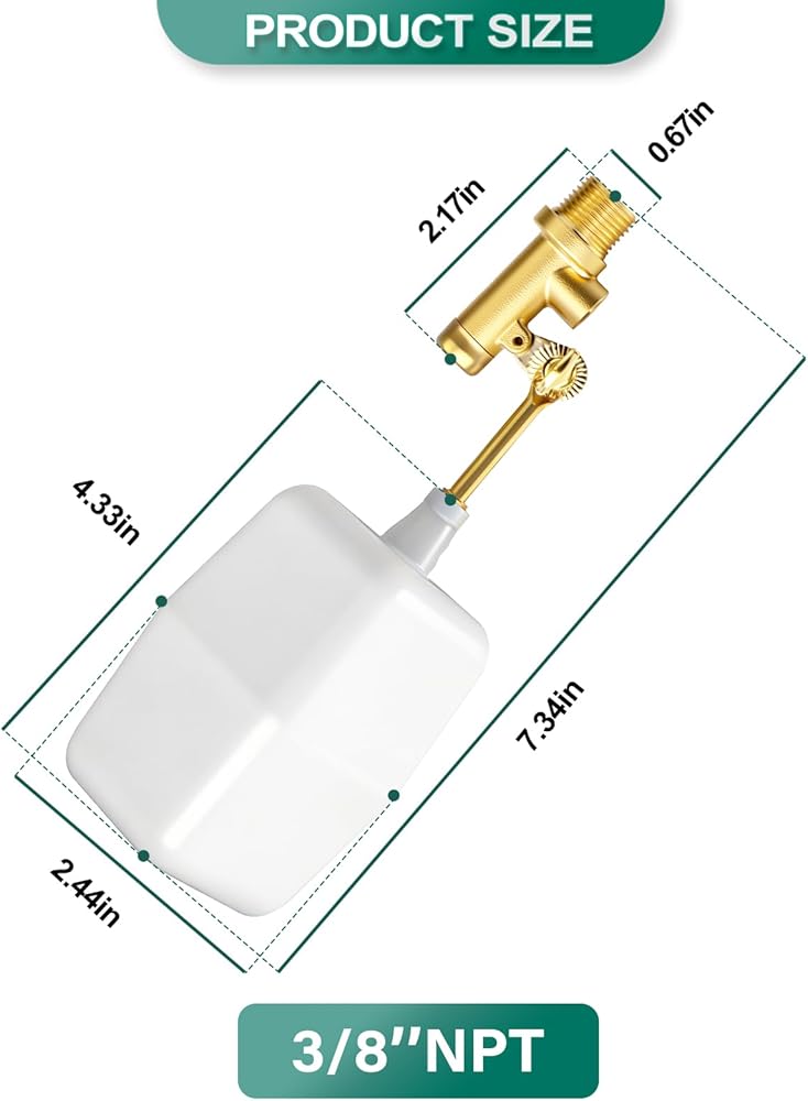 1 قطعة 3/8 "NPT ذكر صمام تعويم المياه، تعبئة أوتوماتيكية وصمام التحكم في مستوى المياه، مع ذراع نحاسي قابل للتعديل، للأوند والنوافير والخزانات وأحواض السمك