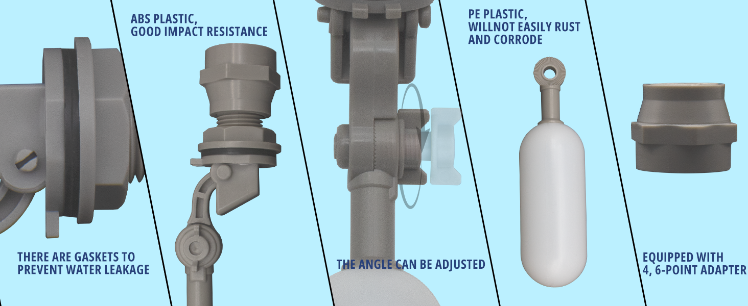 【هيكل متين من أكريلونتريل بوتادين ستايرين والبولي إيثيلين】 جسم الصمام مصنوع من بلاستيك ABS الهندسي القوي، بينما يستخدم الطفو مادة البولي إيثيلين، مما يخلق صمام عائم بلاستيكي صغير مناسب لدرجات حرارة الماء من 0 إلى 70 درجة مئوية.
