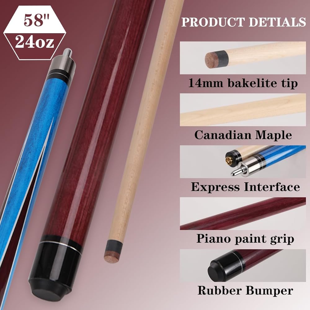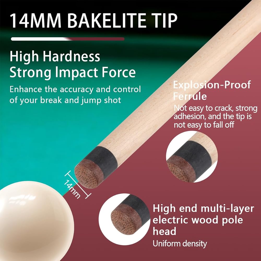 58 Inch 3-piece heavy hitter break cue break cue features North American Grade A Hard Rock Maple ensures reliable performance and long - term durability.