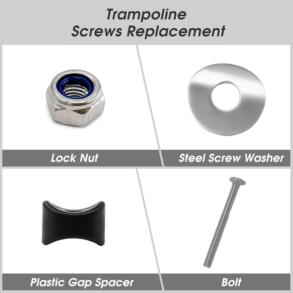 Material:strong trampoline screws and bolts are made of ABS+galvanized steel, sturdy and reliable