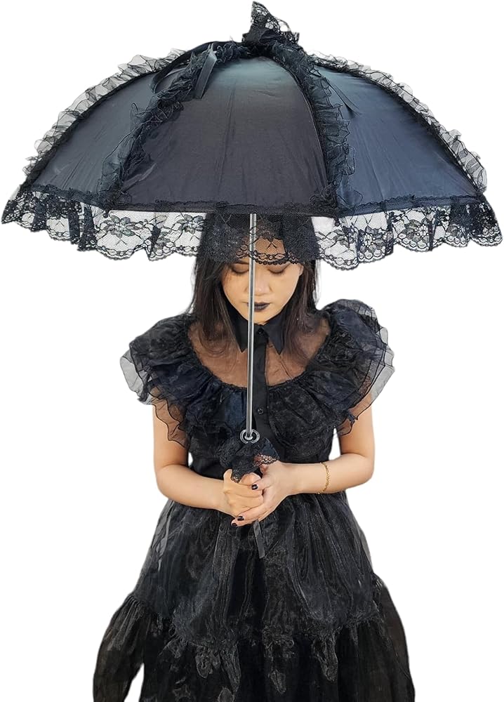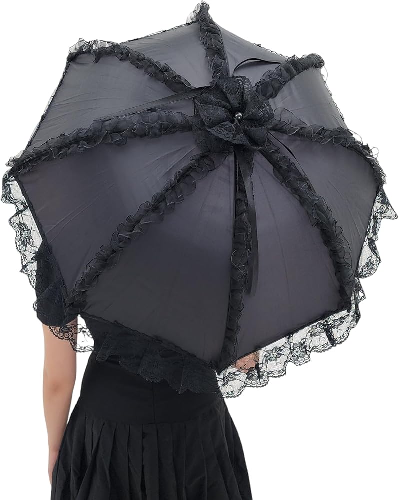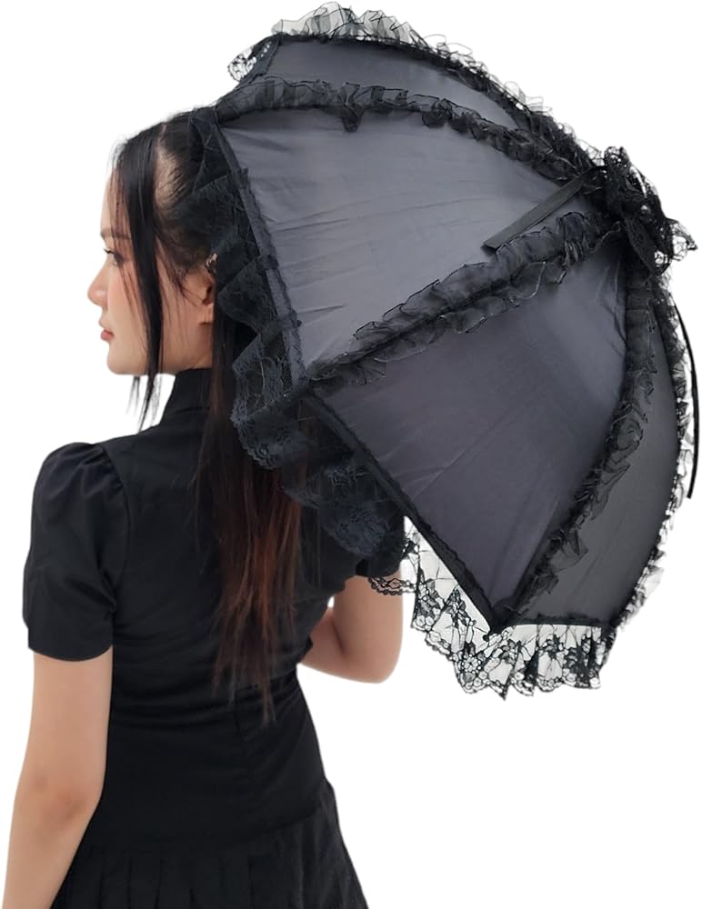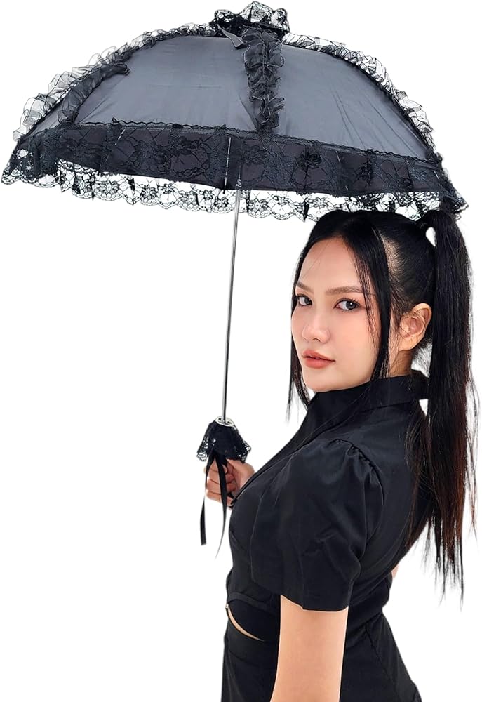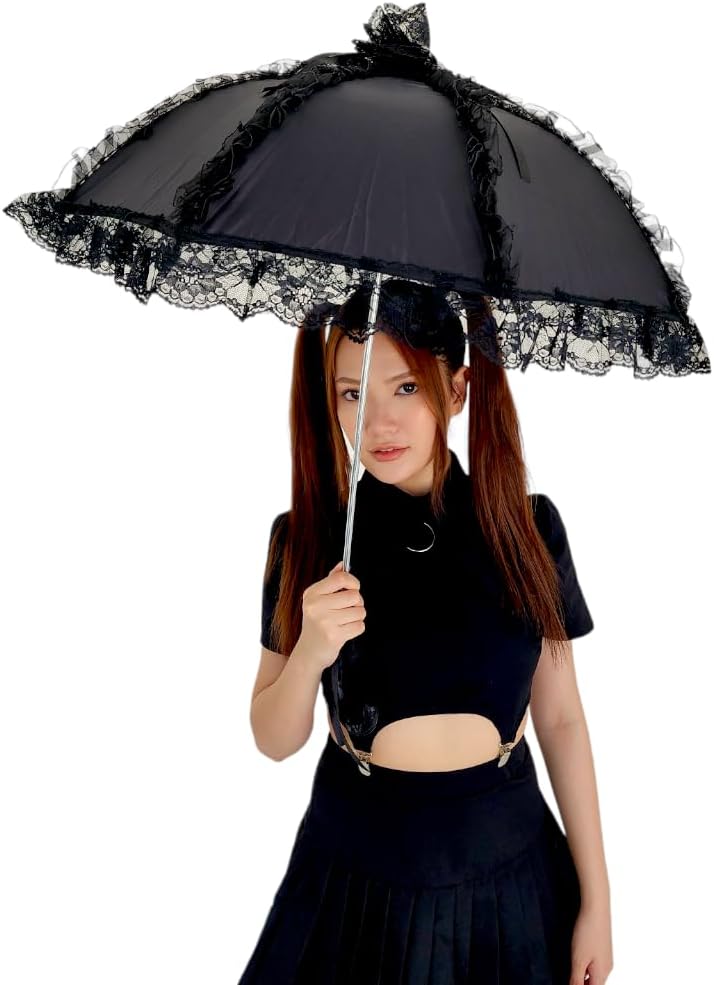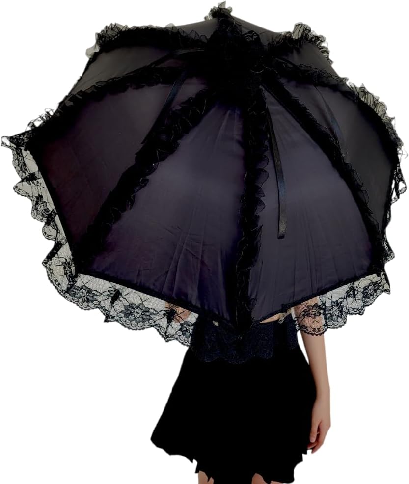 مظلة شمسية من الدانتيل على الطراز القوطي الفيكتوري من Gothika باللون الأسود | مظلة قوطية أنيقة وفريدة من نوعها للحفلات التنكرية والحماية من الشمس | إكسسوار ذو مظهر قوطي فيكتوري