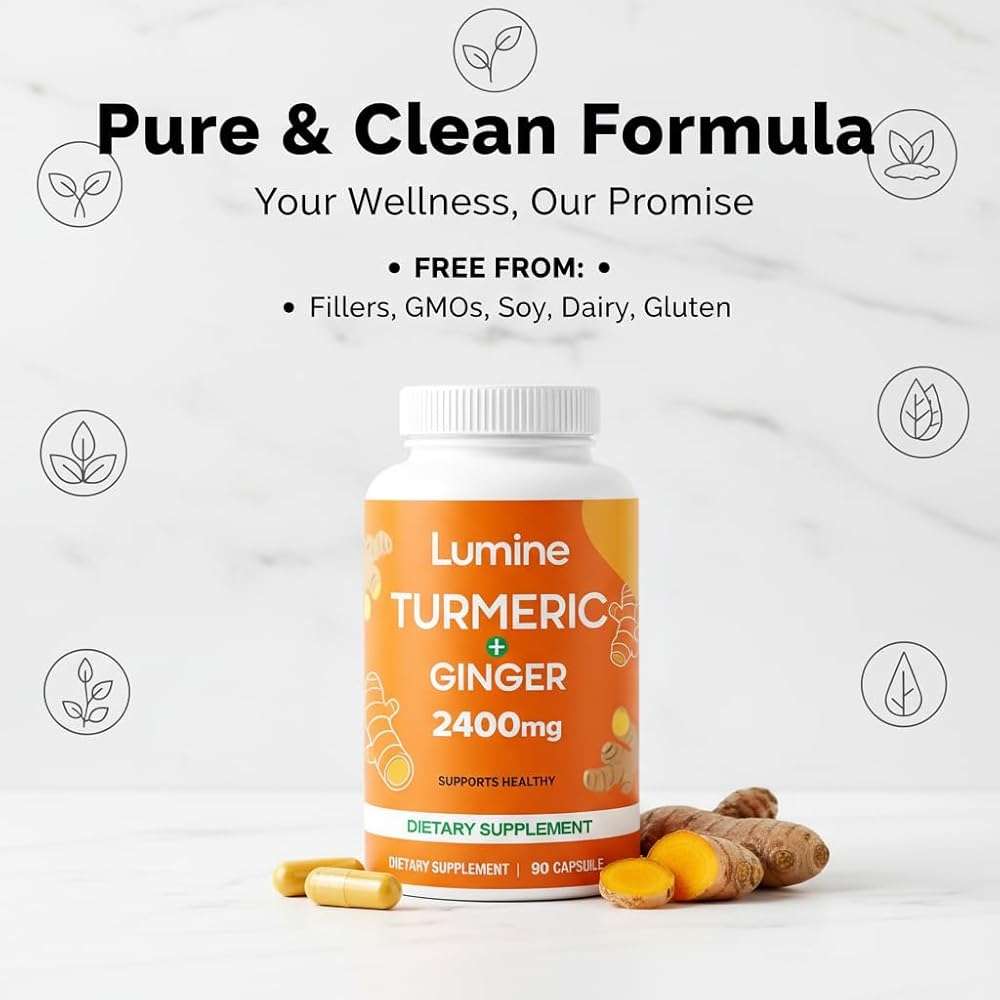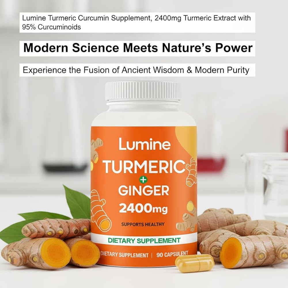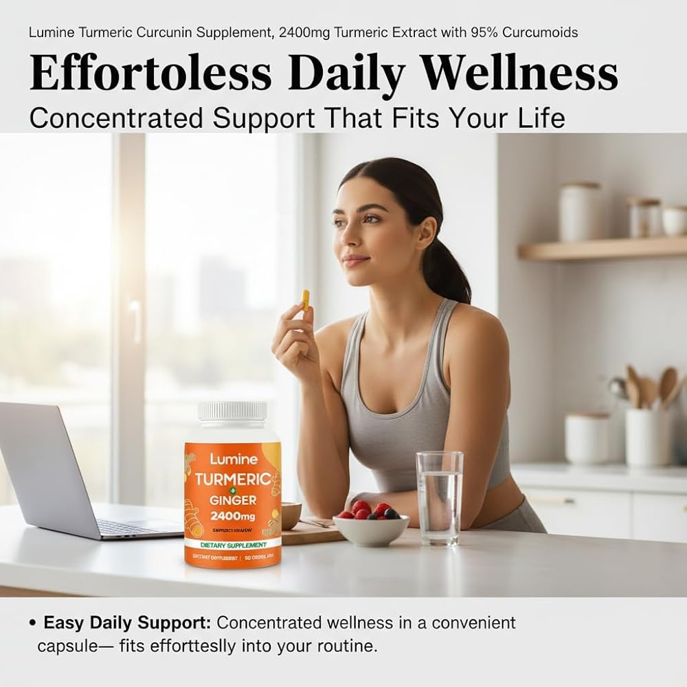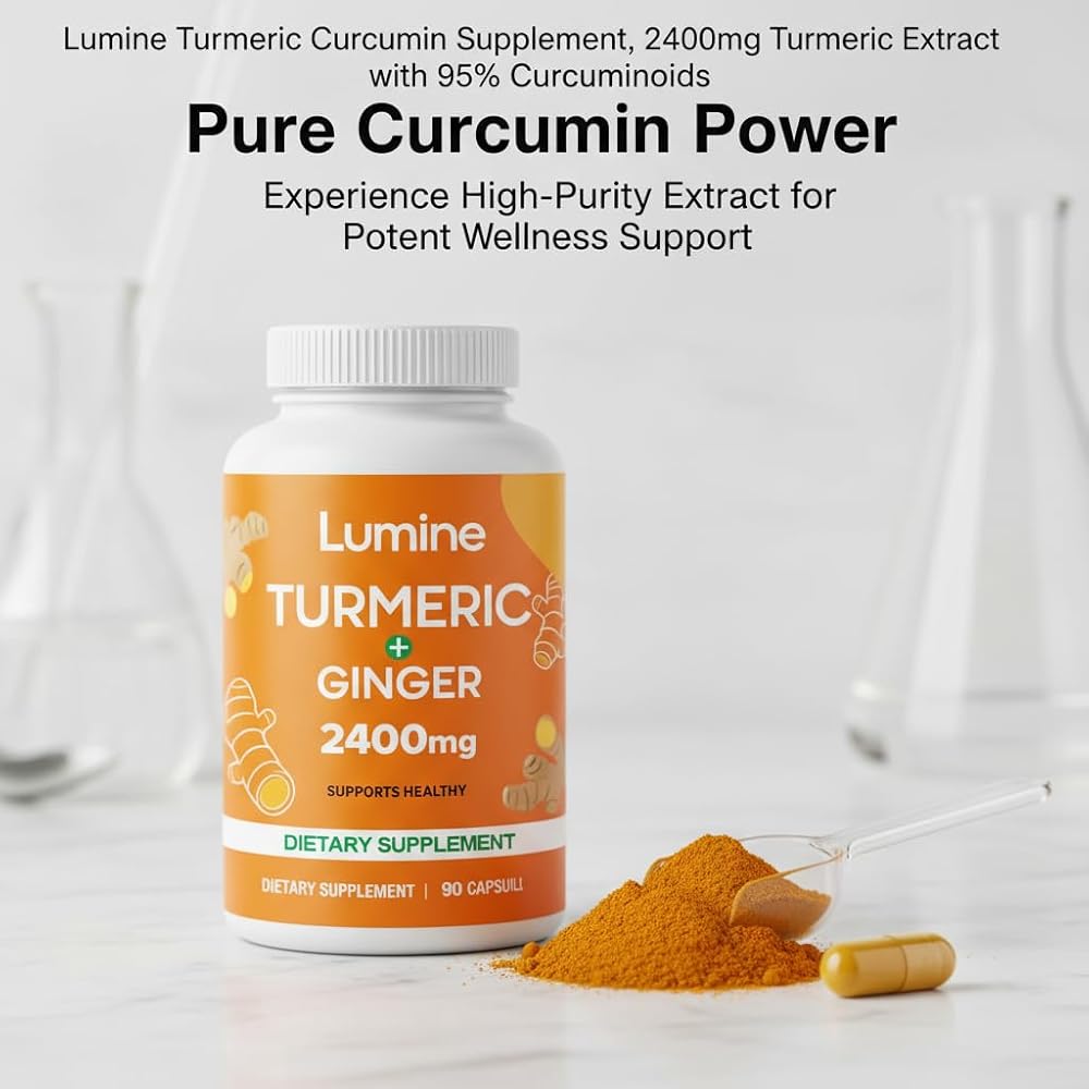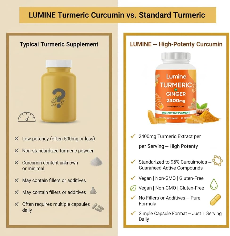 【تركيبة الكركمين عالية الفعالية】توفر كل جرعة 2400 مجم من مستخلص الكركم، موحدة بنسبة 95% من الكركمين - المركبات النشطة الرئيسية - لضمان الفعالية والفعالية، وليس فقط مسحوق الكركم المخفف.