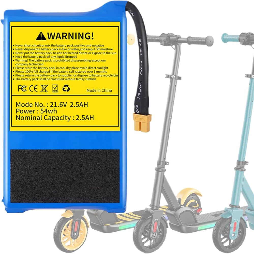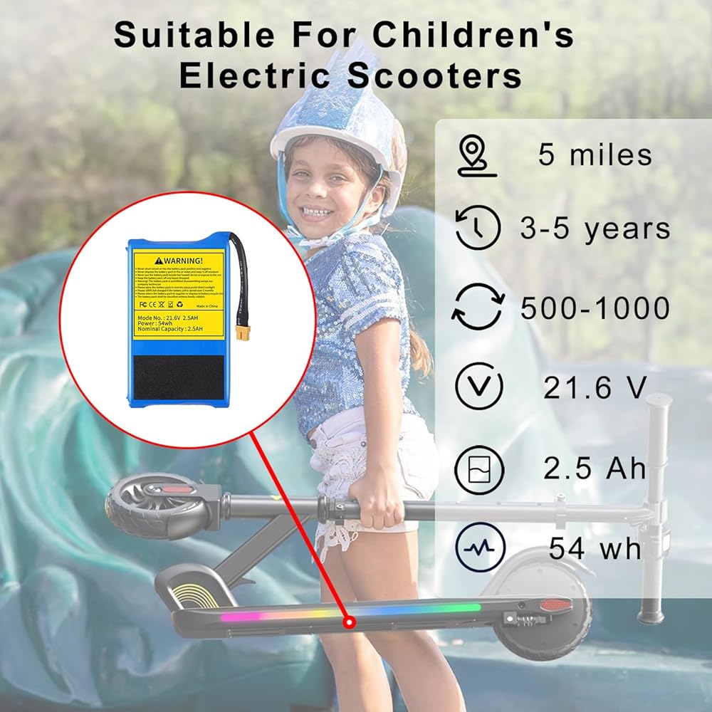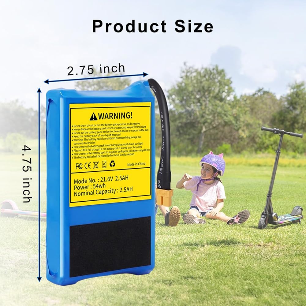 High Capacity: With a 21.6V 2.5Ah lithium-ion composition, this battery pack offers a substantial power reserve, providing up to 5 miles of travel distance or 40-60 minutes of continuous ride time on a single charge.