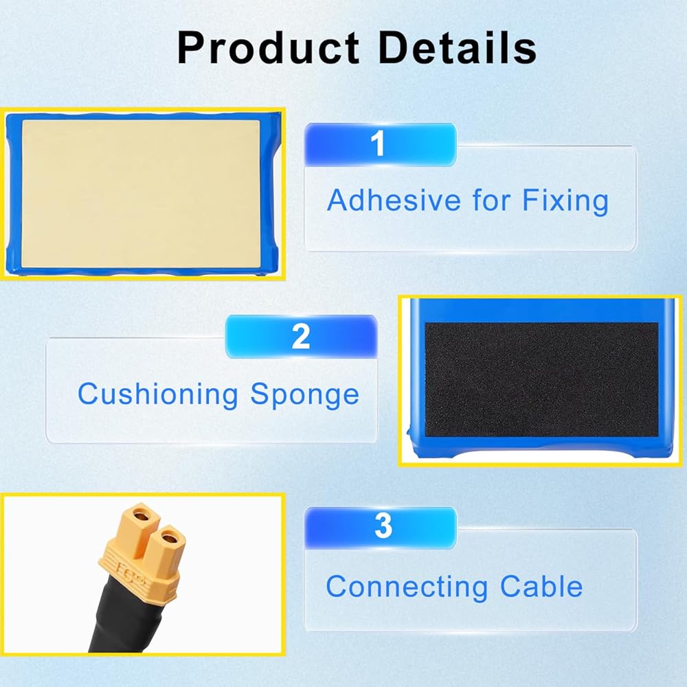Compact Design: Measuring at 1*2.75*4.75 inches, plug: XT60 female and weighing just 400g, this battery is designed compatible for SmooSat E9/E9 Pro/E9 Apex kids scooters. Ensure compatibility by confirming the battery size before purchase.