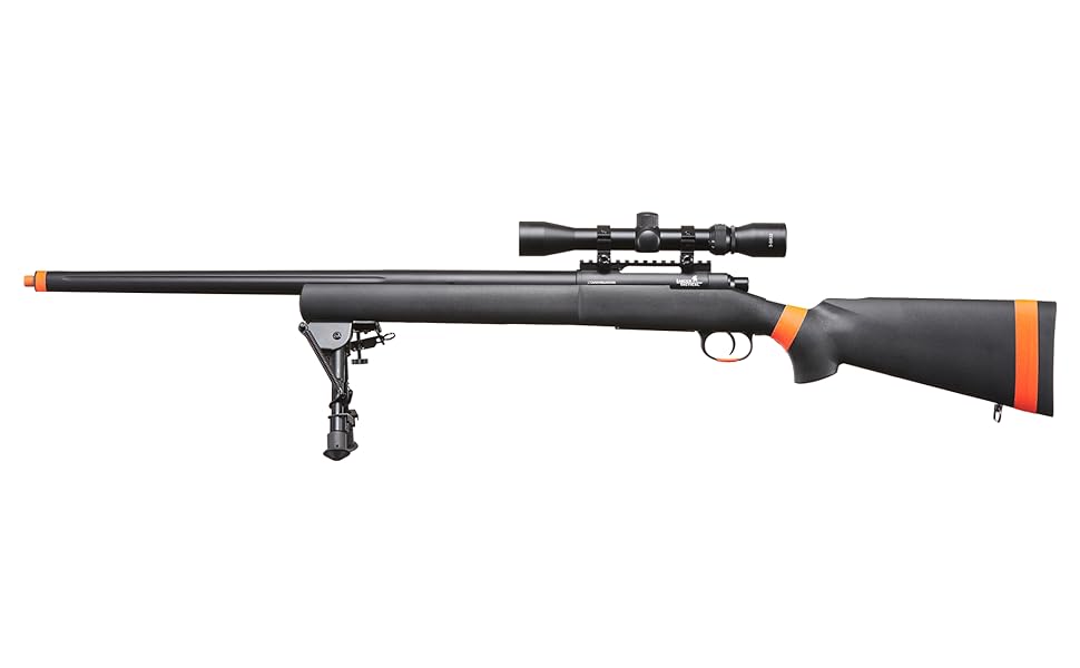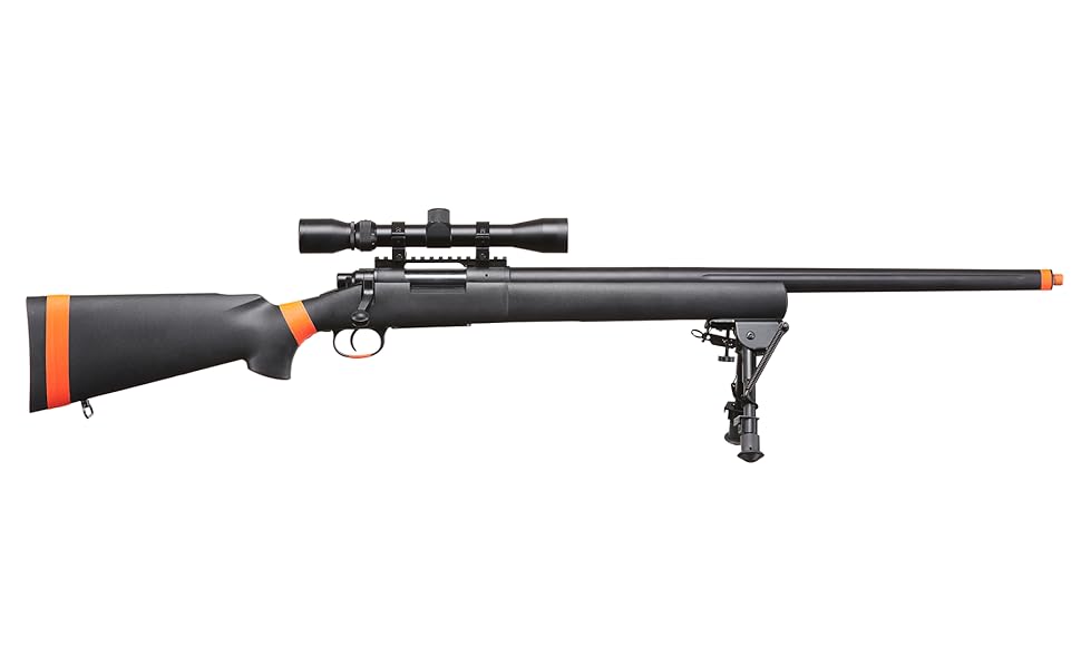 بندقية قنص لانسر التكتيكية M24 Bolt Action Spring Powered Airsoft مع نطاق وBipod يصل إلى 500 إطارًا في الثانية (ملولبة) - متوافقة مع كاليفورنيا