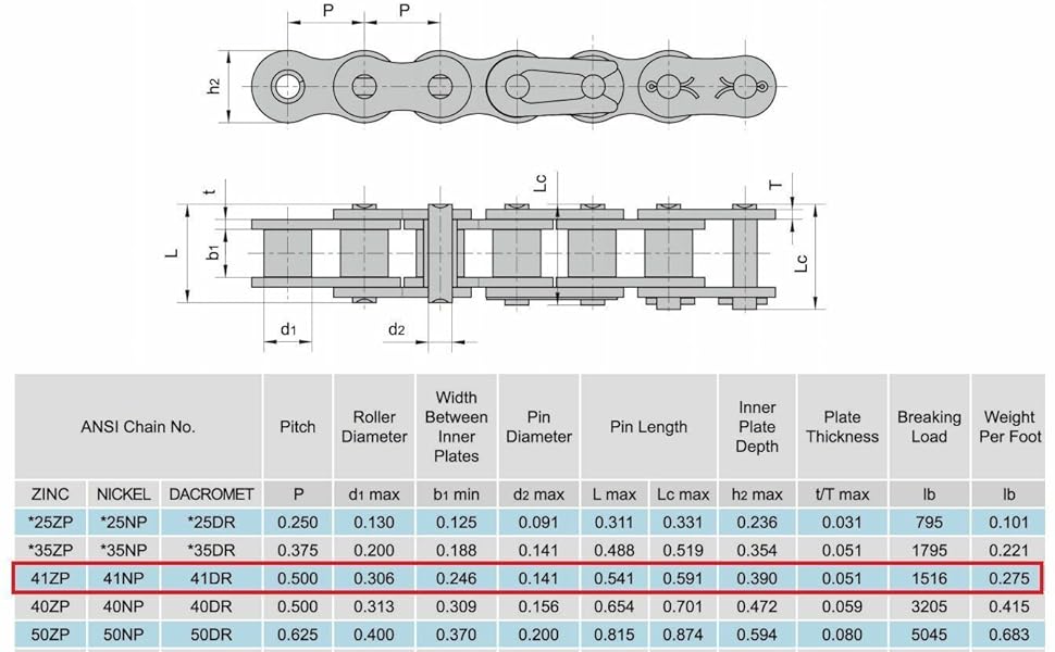 - حجم الملعب: 0.5 بوصة مناسب: سلسلة #41NP