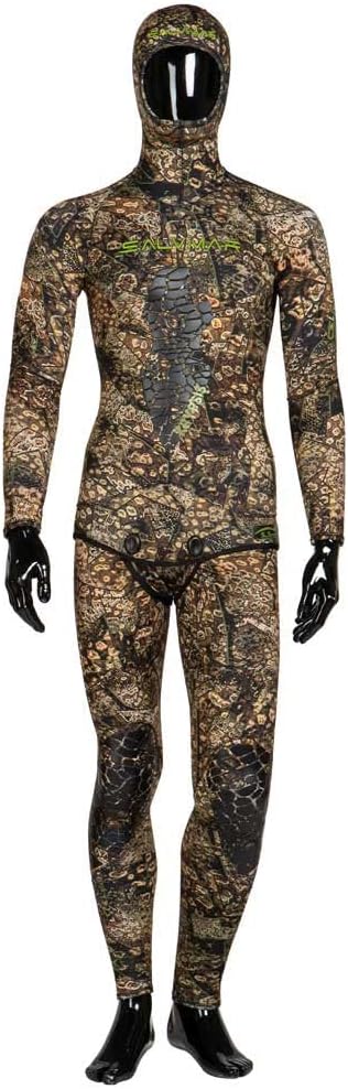 The wetsuit features a high-quality outer material, featuring an ultra-elastic Salvimar Camo lining, which provides perfect camouflage with the surrounding environment. The SHEICO-L FOAM medium density neoprene inner material provides excellent grip during diving. The pant is designed with a differentiated thickness to promote breathing during exhalation, ensuring better body temperature management. The double GBS cross seam ensures maximum tightness and resistance to water infiltration. Salvimar double-buttoned beavertail closure allows easy fitting and secure closure. CRSS (Camo Round Seal System) external trim on wrists, ankles, face oval, and waist edge help keep the wetsuit perfectly fitted to the body.