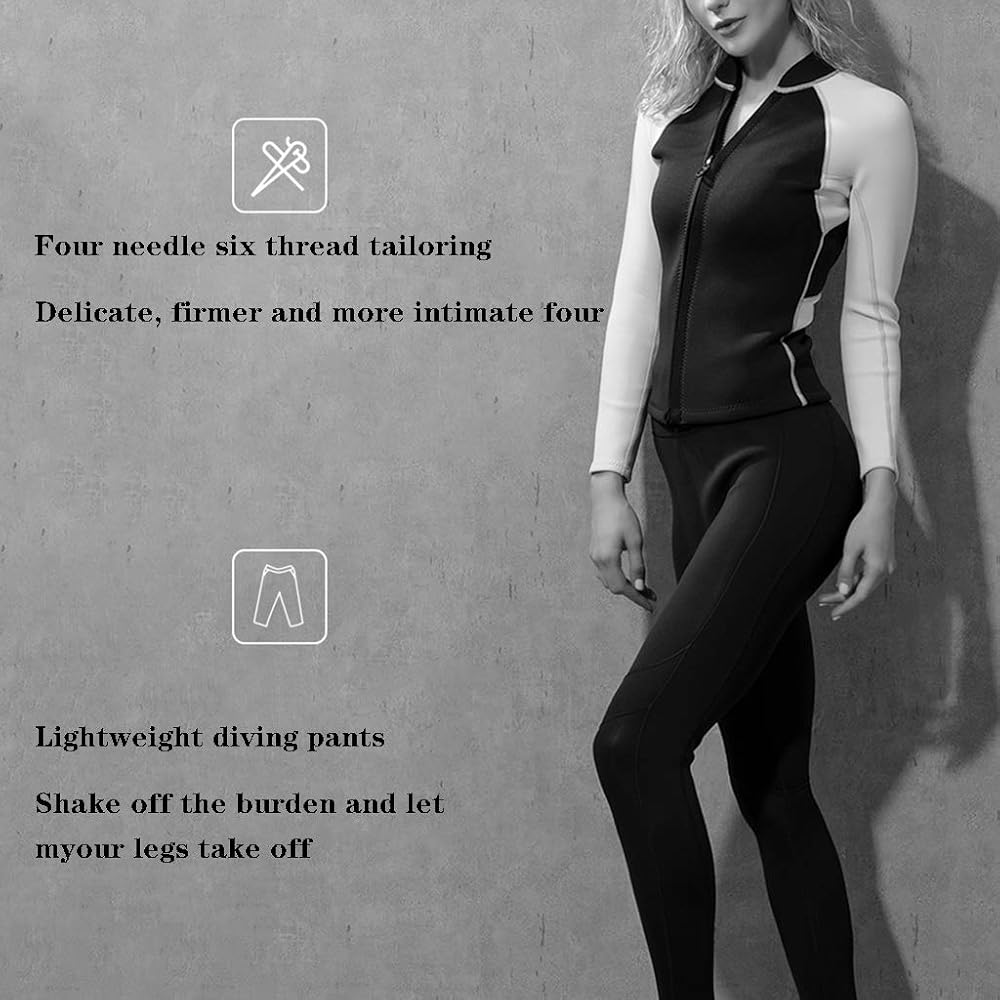 • 🏊【Multifunctional diving suit】: The diving suit adopts a three-layer composite structure design. It has excellent UV protection, avoids sunburn, and can resist cold temperatures, jellyfish, sea lice, etc;A full set of ladies' wetsuits can keep you warm,not only helps you float more easily,It can also help you master swimming and diving skills faster