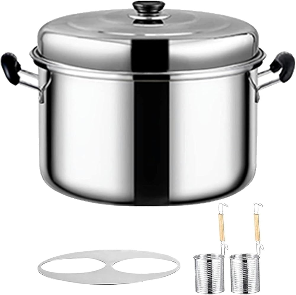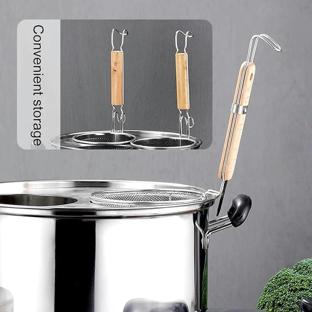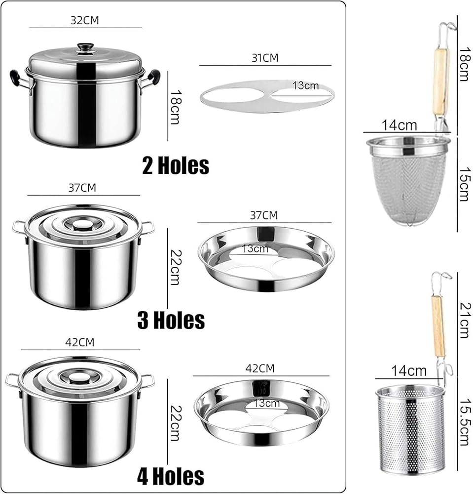 The Stainless Steel Pasta Cooker Pot with Colander Set is a must-have kitchen tool for both home and commercial chefs. Made from stainless steel, this pot is designed for quick and even heat conduction, ensuring efficient cooking. The set comes with 2/3/4 detachable colanders, which allow you to cook different types of food in the same pot. Its humanized design includes a detachable colander holder, smooth edges for safe handling, and a mirror-polished finish that's easy to clean. The flat bottom design ensures compatibility with all types of stoves, including gas, induction, and ceramic, making it versatile for any kitchen. Perfect for cooking noodles, pasta, dumplings, vegetables, and more, this pot is widely used in cafeterias, restaurants, and food stalls. The lid keeps food sealed and dust-, ensuring cleanliness and convenience while cooking.