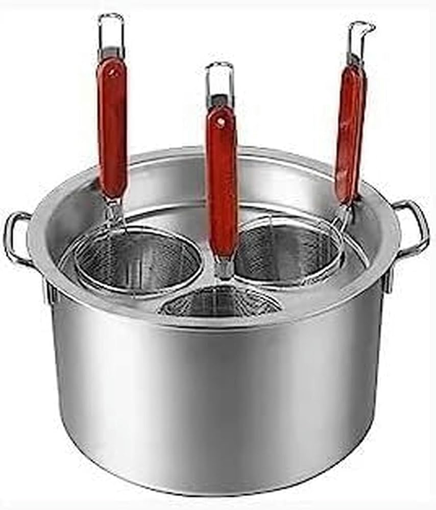 The Commercial Stainless Steel Pasta Cooker Set is a must-have for any high-volume kitchen. Whether you're preparing pasta, noodles, dumplings, or soups, this set provides an efficient and convenient solution for cooking multiple foods at once. With 3/5/6 mesh filter baskets, each offering a 0.26-gal capacity and hooks for easy hanging, you can streamline your cooking process and save valuable time.