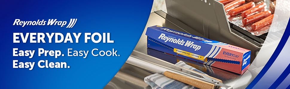For 75 years, Reynolds Wrap Aluminum Foil has been the trusted choice for home cooks seeking unparalleled strength and versatility. Reynolds aluminum foil is designed to be tough and durable, making it the go-to solution for all your kitchen cooking needs. Whether you're protecting your leftovers from freezer burn or lining a baking sheet for easy cleanup afterwards, Reynolds Wrap Everyday Aluminum Foil is a versatile tool for a variety of kitchen tasks. Seal in flavor and moisture by wrapping meats and vegetables in foil packets for grilling, roasting, or baking, ensuring delicious, tender results with every recipe. And when it's time to clean up, just toss the tin foil away—no scrubbing required. Plus, the innovative Easy Open and Stay Closed tab on the side ensures your aluminum foil box stays fully closed when stowed away, making it easy to store inside a kitchen drawer. With a legacy of trusted quality spanning over seven decades, Reynolds Wrap Aluminum Foil is the reliable choice to make your kitchen tasks easier, your meals tastier, and your clean-up quicker.