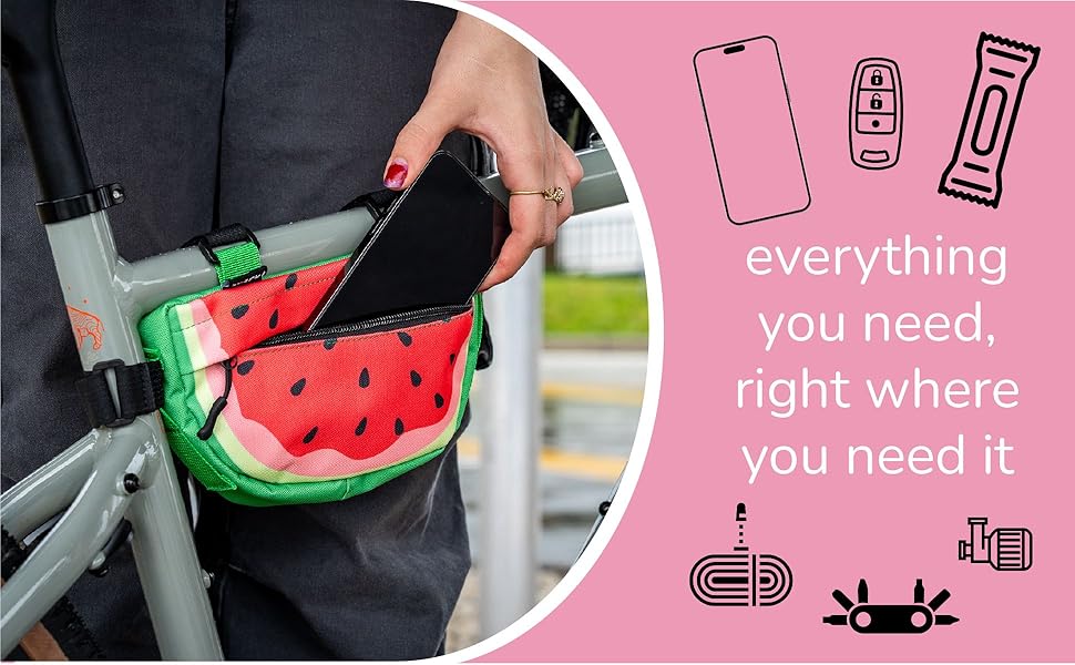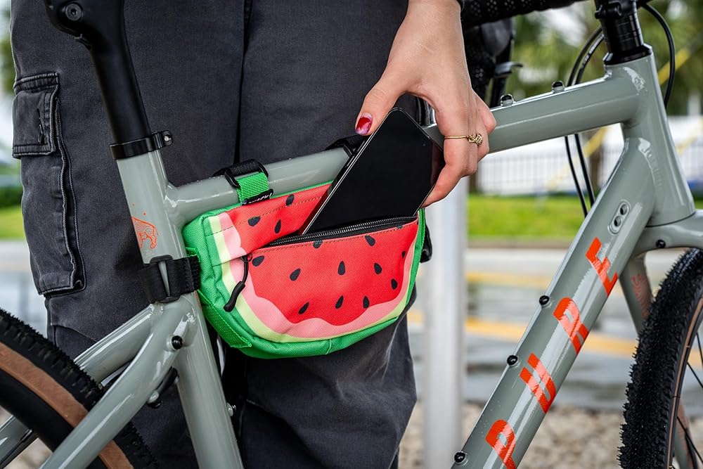 【 مناسبة لجميع الدراجات 】تم تصميم هذه الحقيبة الفريدة ذات الإطار البطيخي للعمل مع أي نمط من الدراجات - دراجات الطرق، والدراجات الهجينة، والدراجات الكهربائية (الدراجات الإلكترونية)، والركاب، والطرادات، والهجينة، ودراجات الحصى، وحتى دراجات الأطفال - سمها ما شئت.