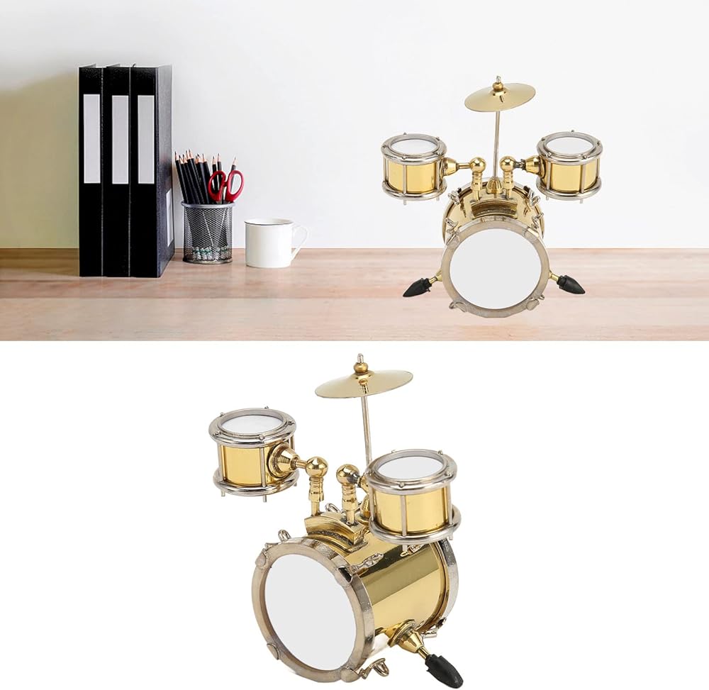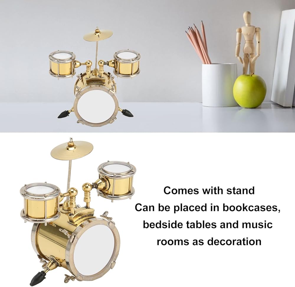 • ELEGANT DECORATIVE PIECE: This miniature drum set model offers a charming aesthetic appeal for any setting. It's an ideal decorative item for music enthusiasts and can be displayed in various locations, including bookshelves, desks, and music rooms