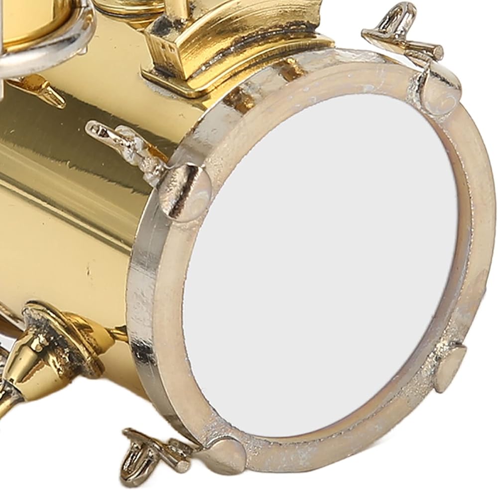 نموذج مجموعة طبول نحاسية مصغرة مع صنعة متقنة، مجموعة طبول بيت الدمى المزخرفة، زخرفة موسيقية نحاسية خفيفة الوزن للمنزل والمقاهي وغرف الموسيقى