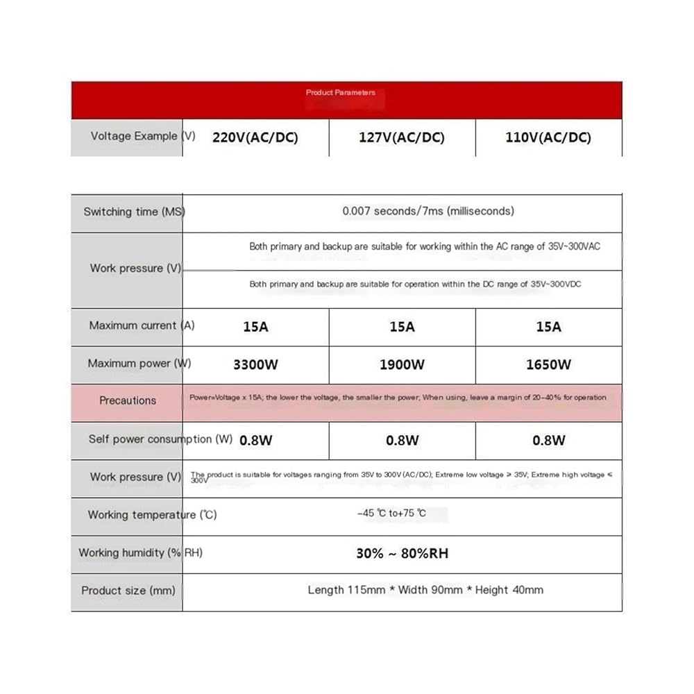 Rated Voltage: AC/DC 110V (Compatible with 50/60Hz)