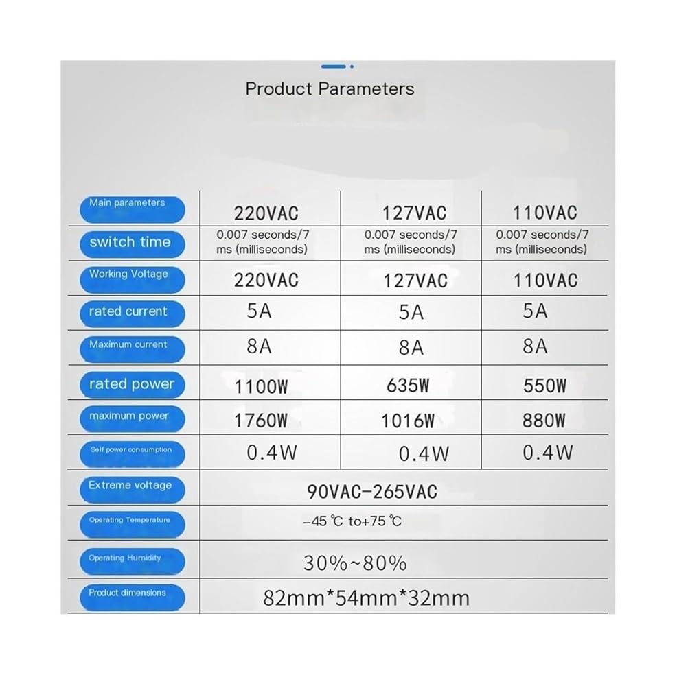 Rated Voltage: AC 127V 50/60Hz