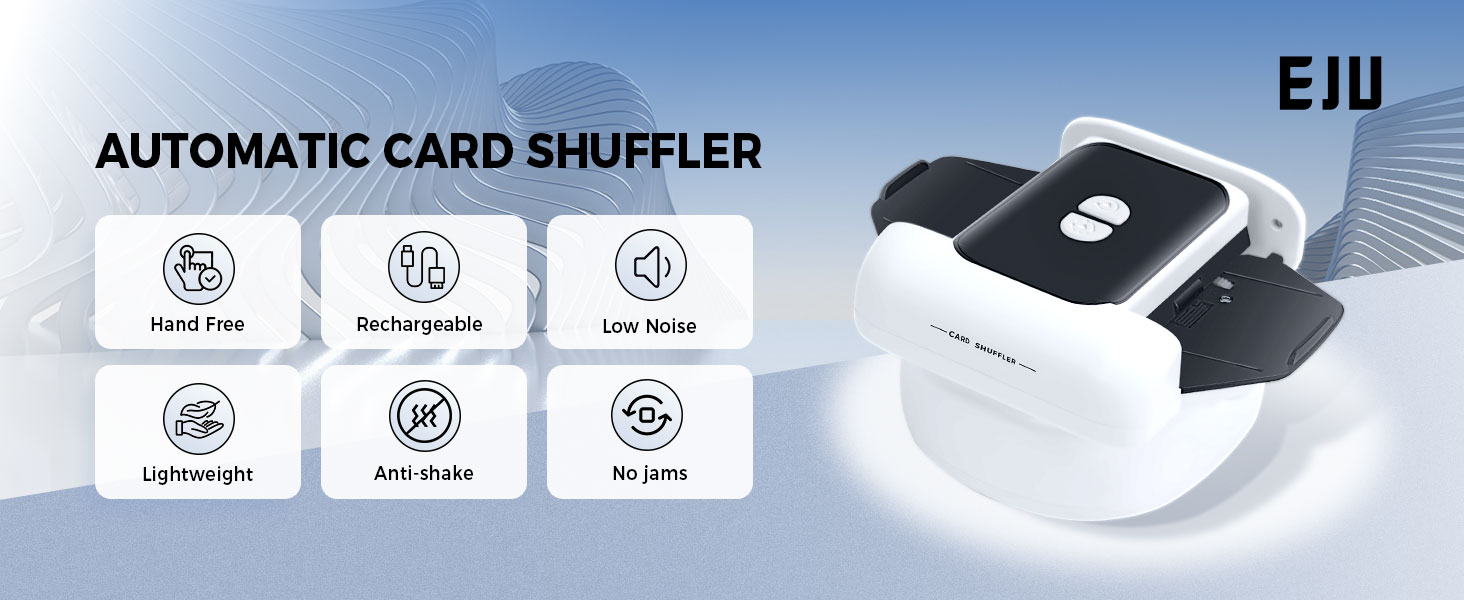 EJU Automatic Card Shuffler 2/1 Deck متوافق مع لعبة بطاقة Uno، أوراق اللعب، الكازينو، آلة البوكر القابلة لإعادة الشحن المتوافقة مع 5 تيجان، المرحلة 10، Mahjong، Skipbo، Blackjack، ليلة ألعاب هادئة للبالغين