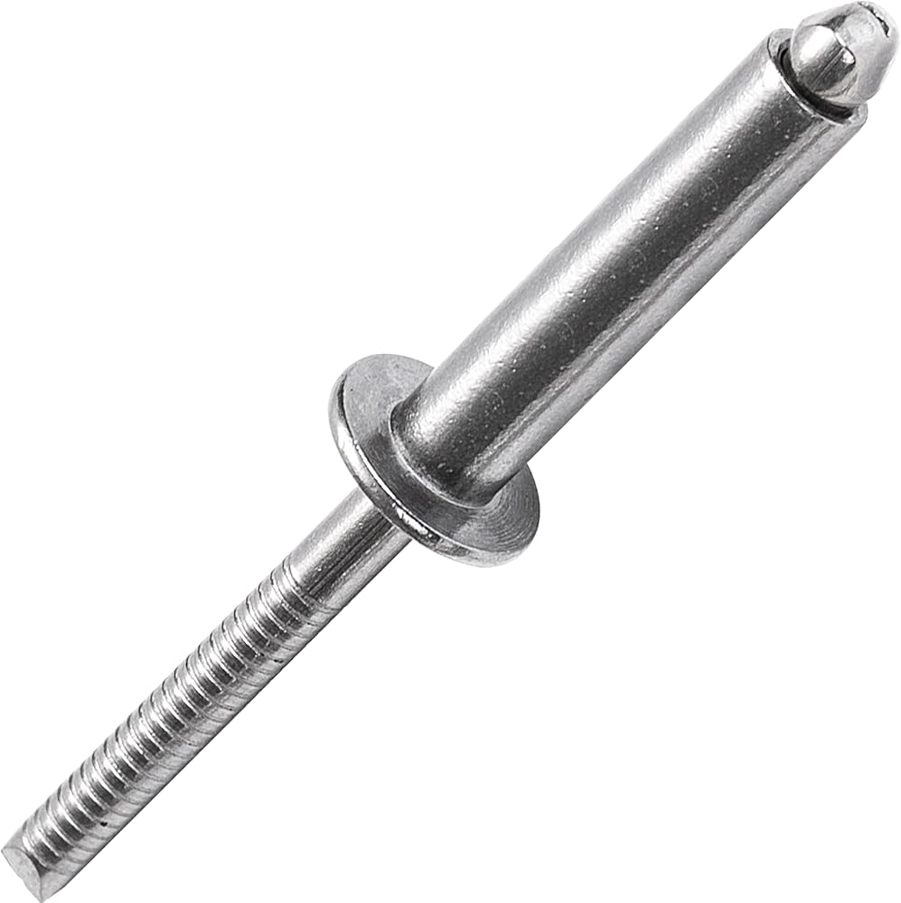 HIGH TENSILE STRENGTH- The stainless steel material provides high mechanical strength and is suitable for connections subjected to high tensile and shear forces. Installation with a rivet gun expands the rivet tail by pulling on the mandrel, creating a permanent fastening.