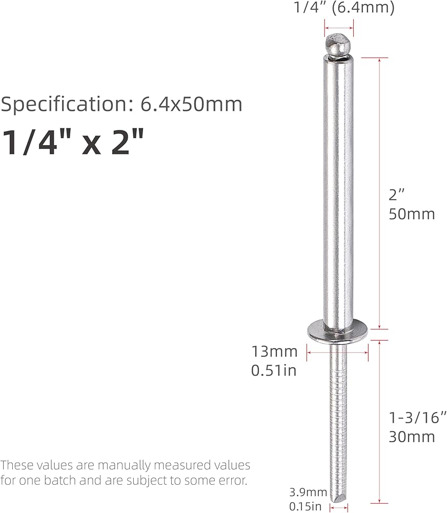 WIDELY USED- The Stainless steel long rivets are strong and suitable for indoor and outdoor use, such as DIY home uses, business, aviation, ductwork, elevator, furniture etc. After the riveting process is completed, it will not deform the surface. Good resistance to temperature changes.