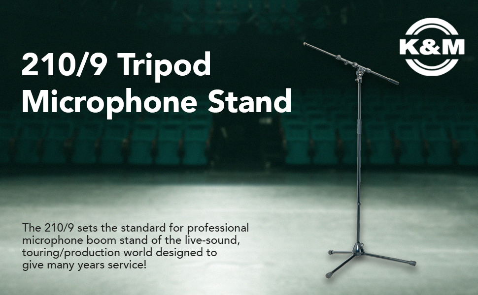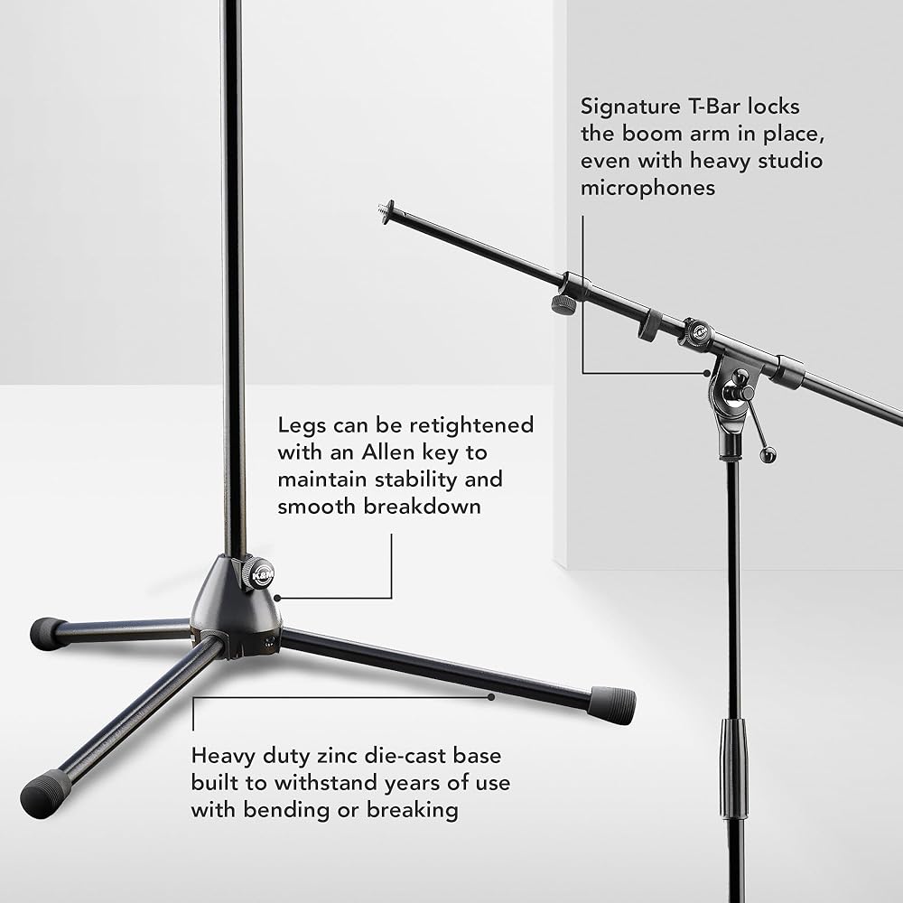 حامل ميكروفون ثلاثي القوائم K&M König & Meyer 21090.500.55 - ذراع ذراع تصغير قابل للتعديل مكون من قطعتين - درجة احترافية - شديدة التحمل مع قاعدة أرجل قابلة للطي - صناعة ألمانية باللون الأسود