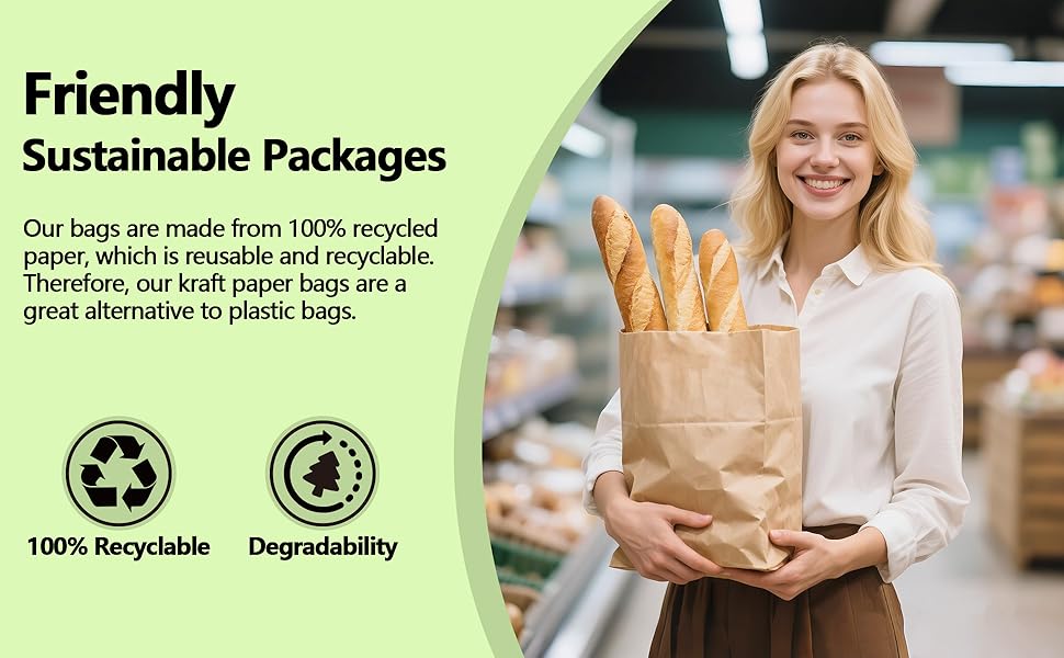 • صديقة للبيئة ومتعددة الأغراض: قابلة لإعادة التدوير بالكامل وخالية من البلاستيك، هذه الأكياس الورقية البنية مثالية للتسوق في البقالة أو تناول الطعام في الخارج أو نفايات المطبخ أو التخلص من فضلات القطط أو كبطانات لسلال المهملات. خيار مستدام للحد من البصمة البيئية.