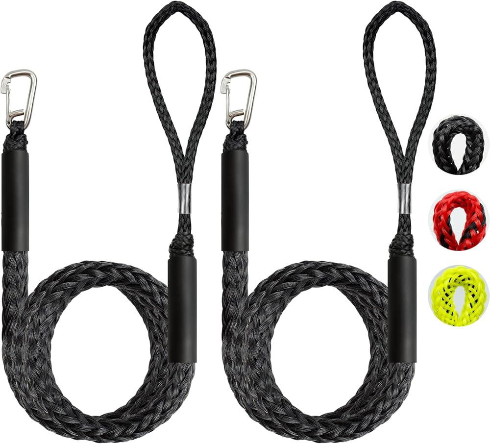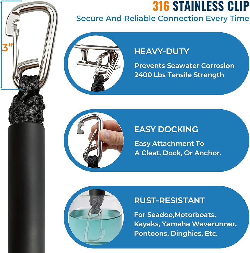 إكسسوارات القوارب بطول 5 أقدام، خطوط قارب بنجي ممتازة، حلقة ممتدة 30 سم مع مشبك من الفولاذ المقاوم للصدأ 316 لرسو جت سكي، سيدو، ياماها ويفر رانر دينجي بونتون، هدايا القوارب (أسود)
