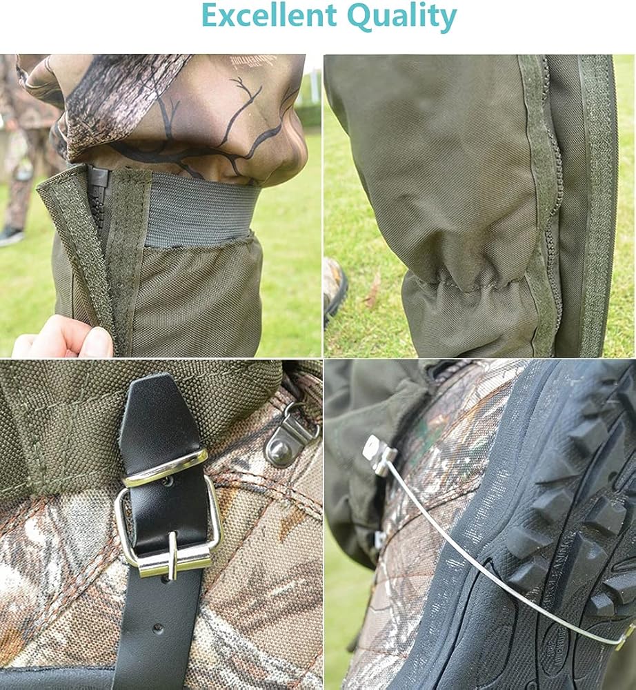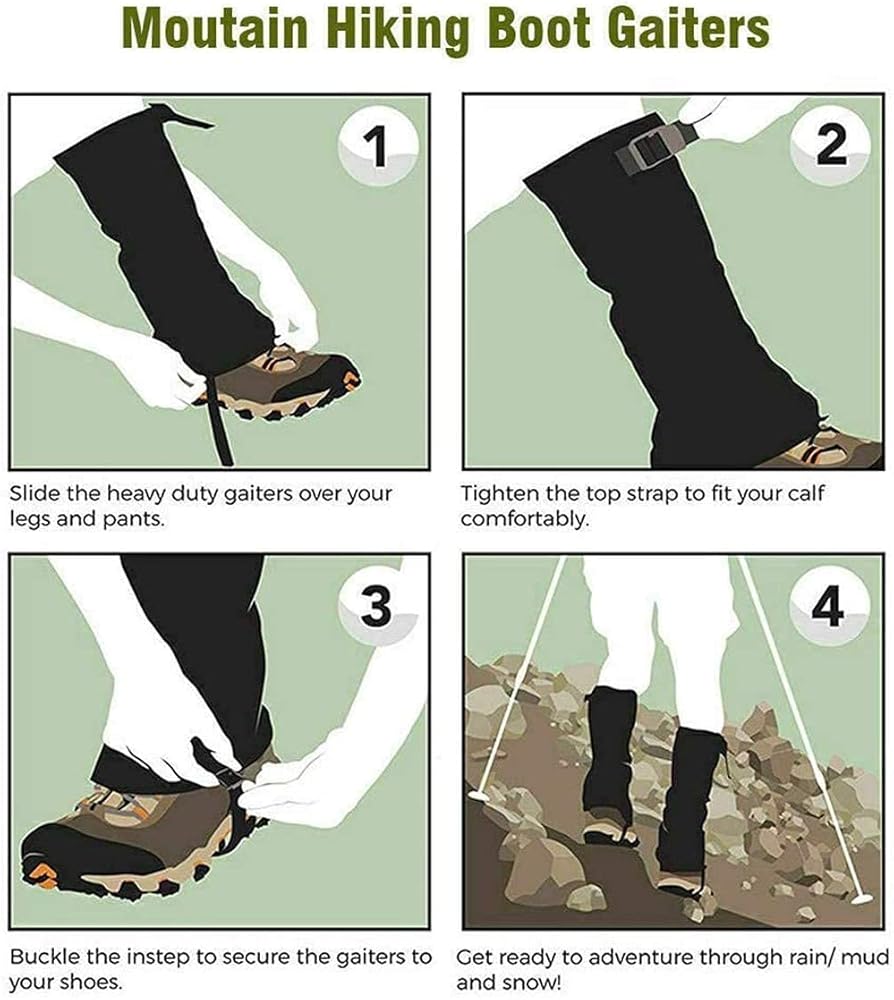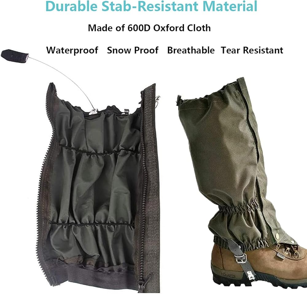 Waterproof Snake Gaiters: The high-quality waterproof coating can keep your legs dry. You can wear them in the woods or other wet environments but still feel comfortable. It also prevents mud, wind, sand, and insects from entering into your shoes or pants. Stainless steel Wire Strap can keep safe to avoid your gaiters frozen in winter and enhance the durability of it.