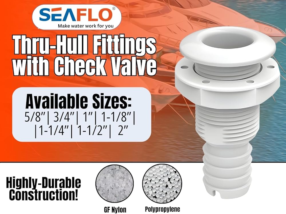 Upgrade your marine vessel with the SEAFLO Thru-Hull Fittings, expertly designed to provide superior durability and performance. Available in multiple sizes and colors, these fittings are made from high-quality polypropylene and glass-filled nylon, ensuring they withstand harsh marine conditions. Equipped with a reliable check valve, these thru-hull fittings are perfect for various applications in ships, yachts, and boats, enhancing safety and functionality.