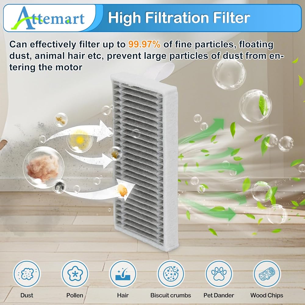 【سهل التركيب】 الفلتر الخاص بـ ecovacs deebot X8 pro omni مصنوع من مادة ترشيح عالية، ويمكنه التقاط 99.97% من الشعر وفرو الحيوانات الأليفة ومجموعة متنوعة من الجزيئات حتى 0.3 ميكرومتر، مما يحسن أداء الشفط للروبوت الخاص بك بشكل كبير. يمكن التخلص من كيس الغبار x8 omni، وهو مصنوع من طبقات متعددة، بما في ذلك الألياف الدقيقة وغير المنسوجة، وهي سهلة التركيب ومقاومة للتمزق وقوية ويمكن إدخالها بسهولة في المكنسة الكهربائية.