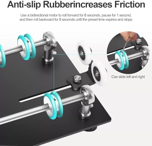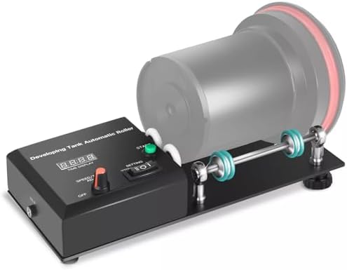 The Darkroom Film Processor Machine offers a versatile time setting range from 1 to 30 minutes, with an LED panel clearly displaying the preset time. For longer cans, you can easily remove the right scroll knob to install an extension rod for added length. The two adjustable lower legs on the right side provide stability and prevent the can from sliding out during operat by raising the legs as needed.