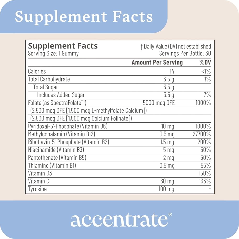• ✅ فيتامينات متعددة ميثيلية ومتوفرة بيولوجيًا - تحتوي على مغذيات جاهزة للدماغ: L-ميثيلفولات (5-MTHF)، ميثيل كوبالامين (B12)، P5P (بيريدوكسال-5'-فوسفات، B6) وL-تيروزين مكمل MTHFR المثالي.