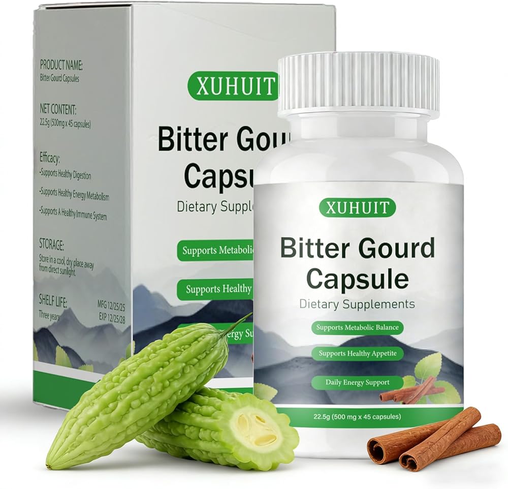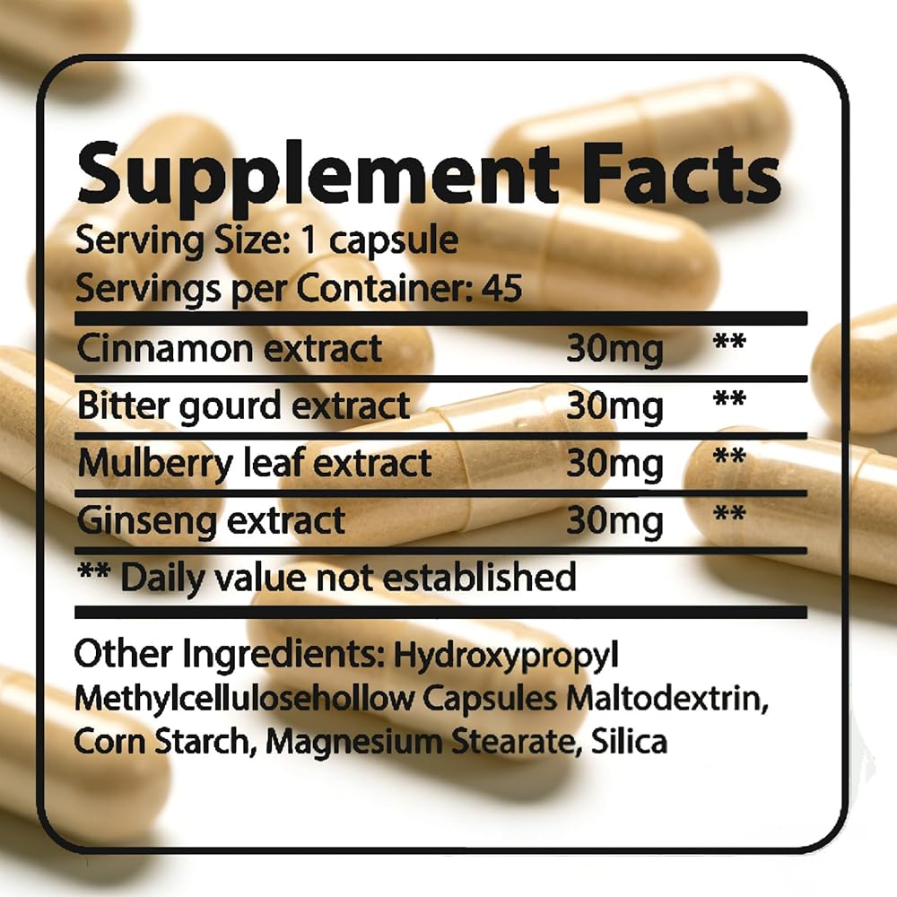 Bitter Melon & Cinnamon Complex:1350 mg high-potency Bitter Melon Extract with Cinnamon, Ginseng, and Mulberry Leaf. Advanced extraction technology for purity