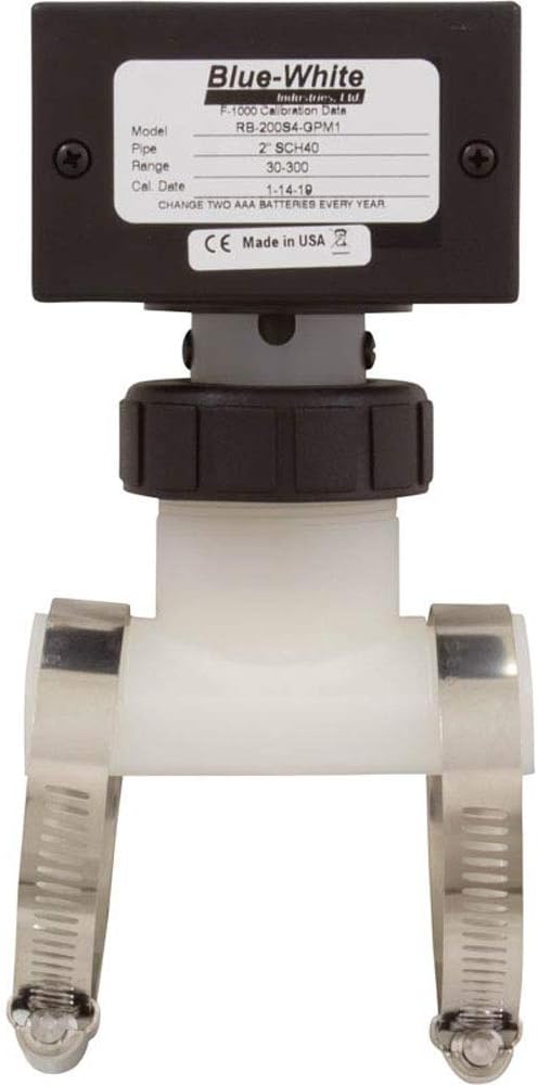 مقياس التدفق، أزرق-أبيض، F-1000، رقمي، 2 بوصة PVC، 30-300 جالون في الدقيقة