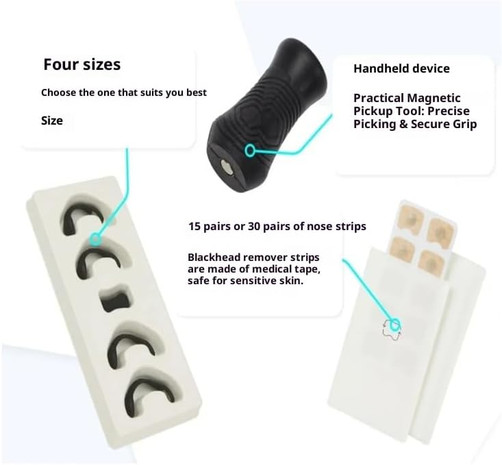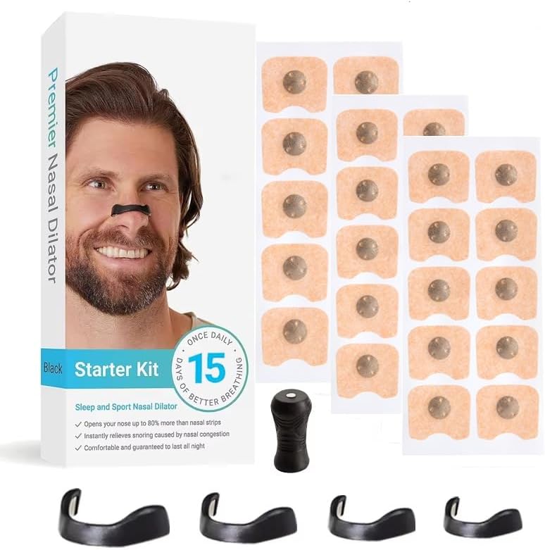 Magnetic Anti-Snore Kit: Nasal Dilator + Breathing Strips 30-Pack | Comfortable Sleep Apnea Relief & Nasal Expansion Solution (15 Pairs of Black Squares Measuring 18.7 * 8.8 * 1.8cm)