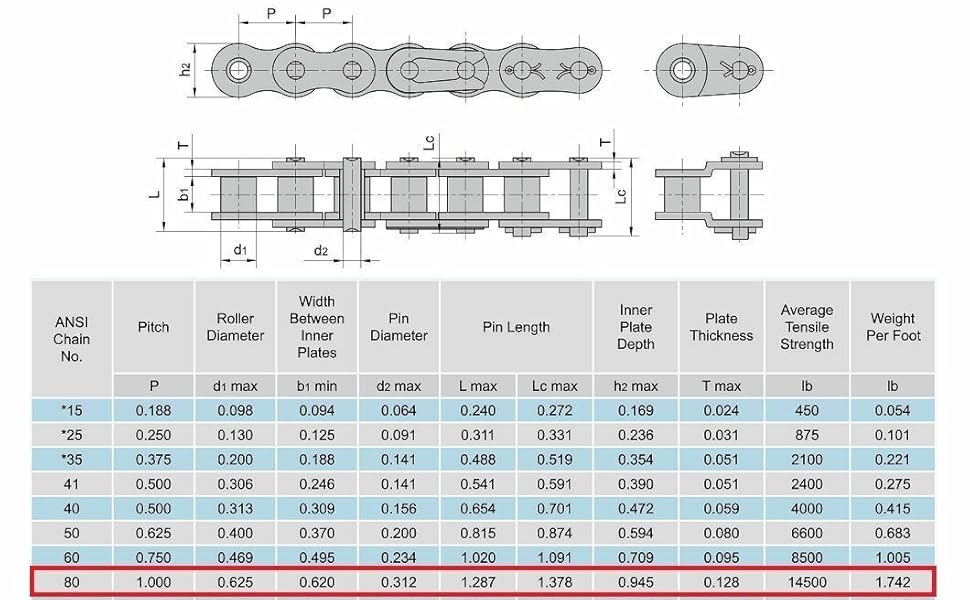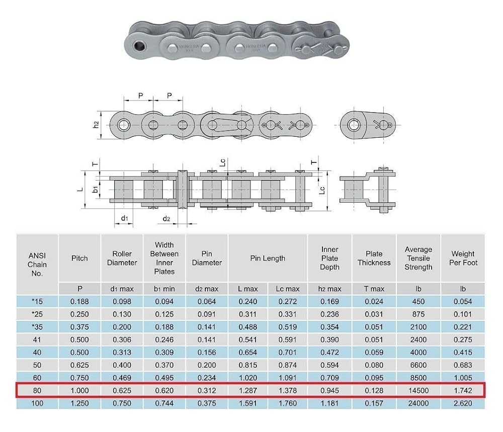 • مقاس الملعب: 1 بوصة مناسب: سلسلة #80