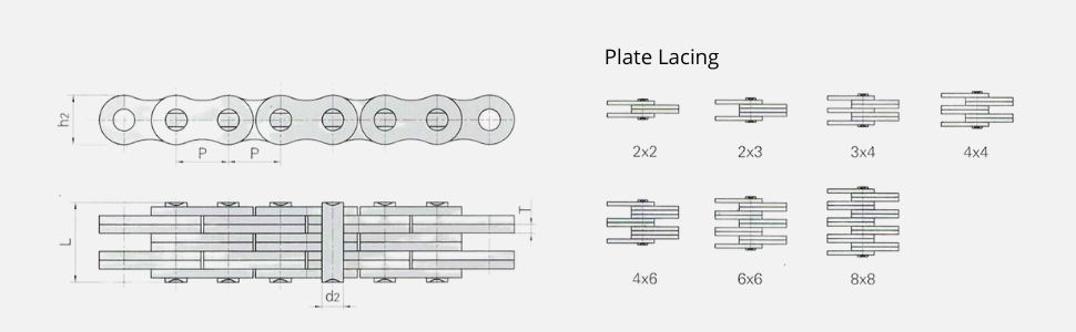 المواد: مصنوعة من سبائك فولاذية عالية الجودة مع مكونات معالجة بالحرارة ومصممة بتقنية تصلب خاصة لتعزيز مقاومة التآكل وقوة التعب في السلسلة بشكل فعال.