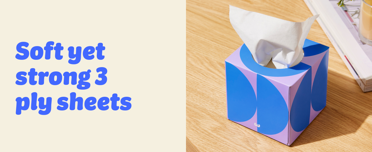 • ناعمة وقوية من 3 طبقات: عطس كبير؟ لا مشكلة. شهقة صغيرة؟ مغطاة. يوازن كل منديل مكون من ثلاث طبقات بين النعومة والمتانة، لذلك تحصل على الراحة والقوة في كل ورقة دون الاعتماد على لب الأشجار.