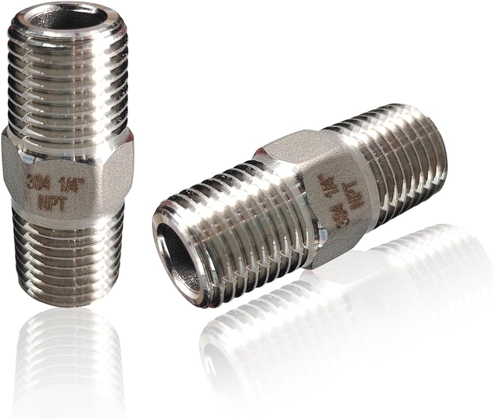 【ختم الخيوط المدببة 60 درجة】: تركيبات محول من الفولاذ المقاوم للصدأ NPT مقاس 1/4 بوصة × 1/4 بوصة لتوصيل الخراطيم، تستخدم لتوصيل الفولاذ المقاوم للصدأ أو أنابيب الحديد NPT. تم تصميم تركيبات الأنابيب المصنوعة من الفولاذ المقاوم للصدأ باستخدام مستدقاق خيط NPT القياسي الأمريكي، مما يضمن اتصالًا محكمًا وآمنًا. قل وداعًا للتسربات واستمتع بالتركيب الخالي من المتاعب. تسمح الخيوط العميقة بتثبيت أفضل وقوة عض، بينما تجعل الخيوط الأكثر سلاسة التثبيت أسهل وأسرع.