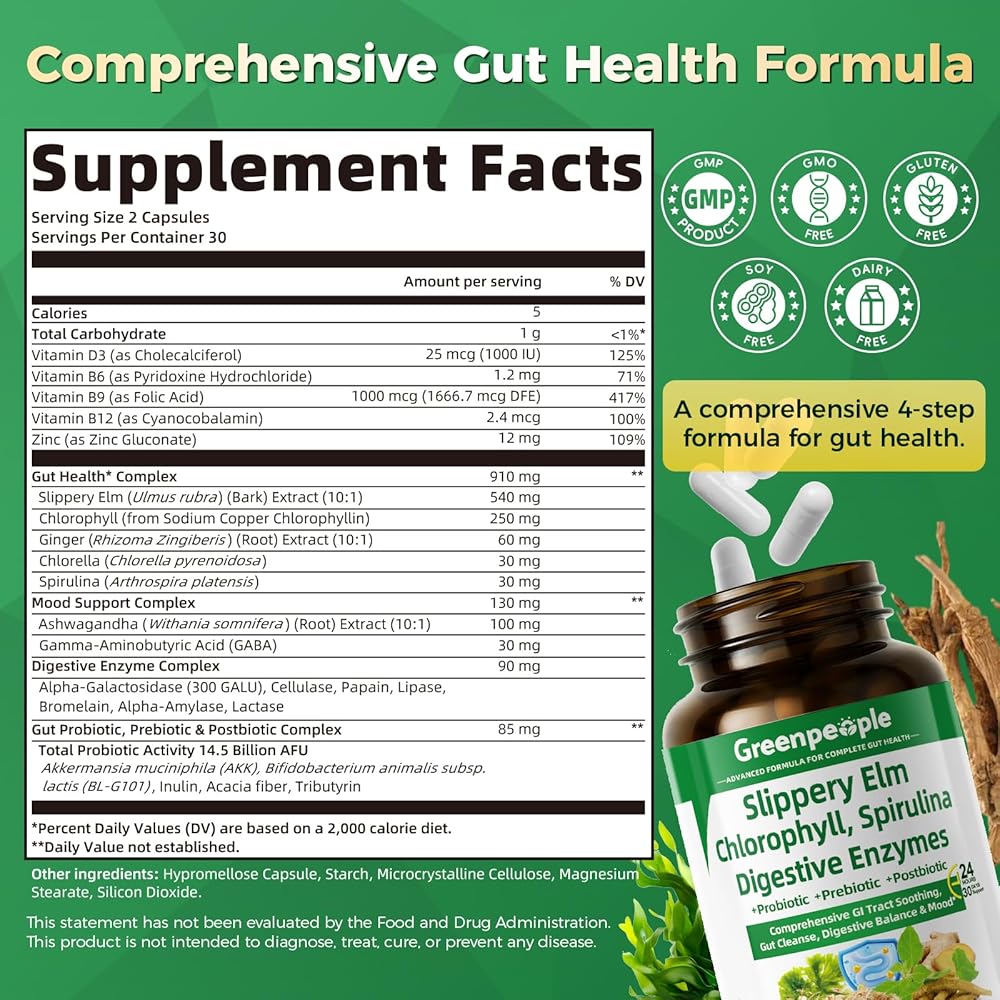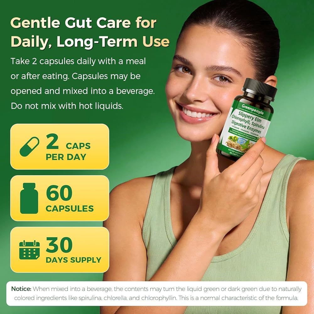 إنزيمات الجهاز الهضمي من جرين بيبول للنساء والرجال - كبسولة لطيفة لتنظيف الأمعاء وصحتها مع الدردار الزلق، والكلوروفيل، والسبيرولينا، ومركب البروبيوتيك - مكمل أمعاء حساس كامل 60 قيراط، استخدام لمدة 30 يومًا