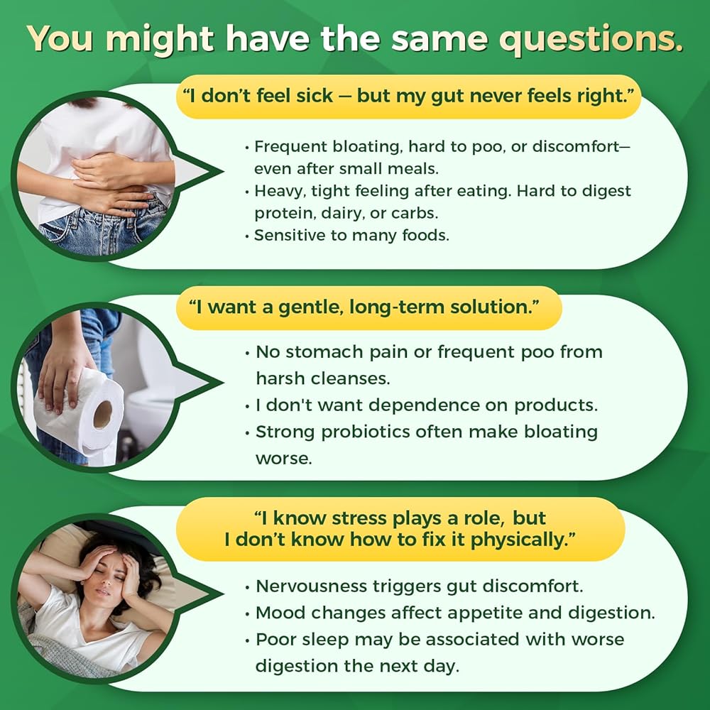 • جودة العلامة النظيفة التي يمكنك الوثوق بها: تم تصنيعها في منشأة معتمدة من GMP، وخالية من الكائنات المعدلة وراثيًا، وخالية من الغلوتين، وخالية من الصويا، وخالية من منتجات الألبان. مصمم للرجال والنساء الذين يعانون من عدم الراحة المرتبطة بالمزاج المعوي. توفر هذه الكبسولات سهلة البلع دعمًا لطيفًا ومتسقًا لأمعائك وحالتك المزاجية. توفر كبسولتان فقط يوميًا صحة أمعاء آمنة وطويلة الأمد وتطهيرًا للأمعاء لا يشكل عادة وخاليًا من الإضافات القاسية.