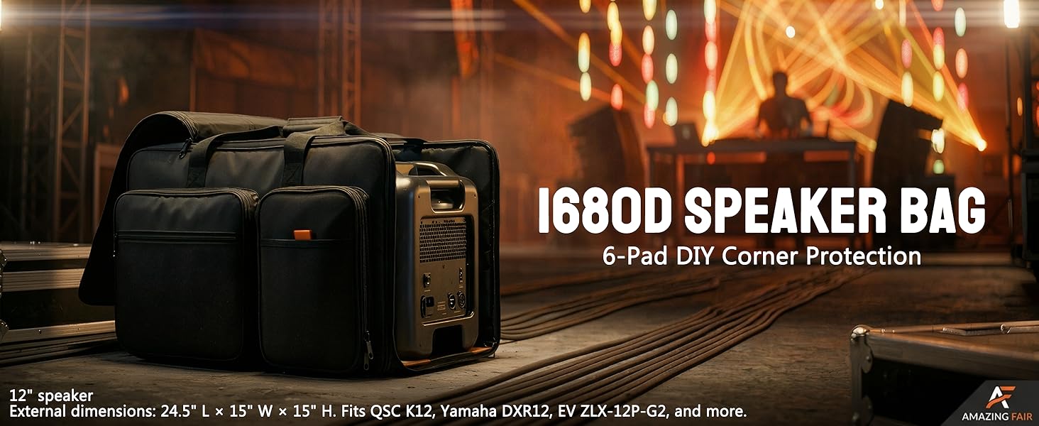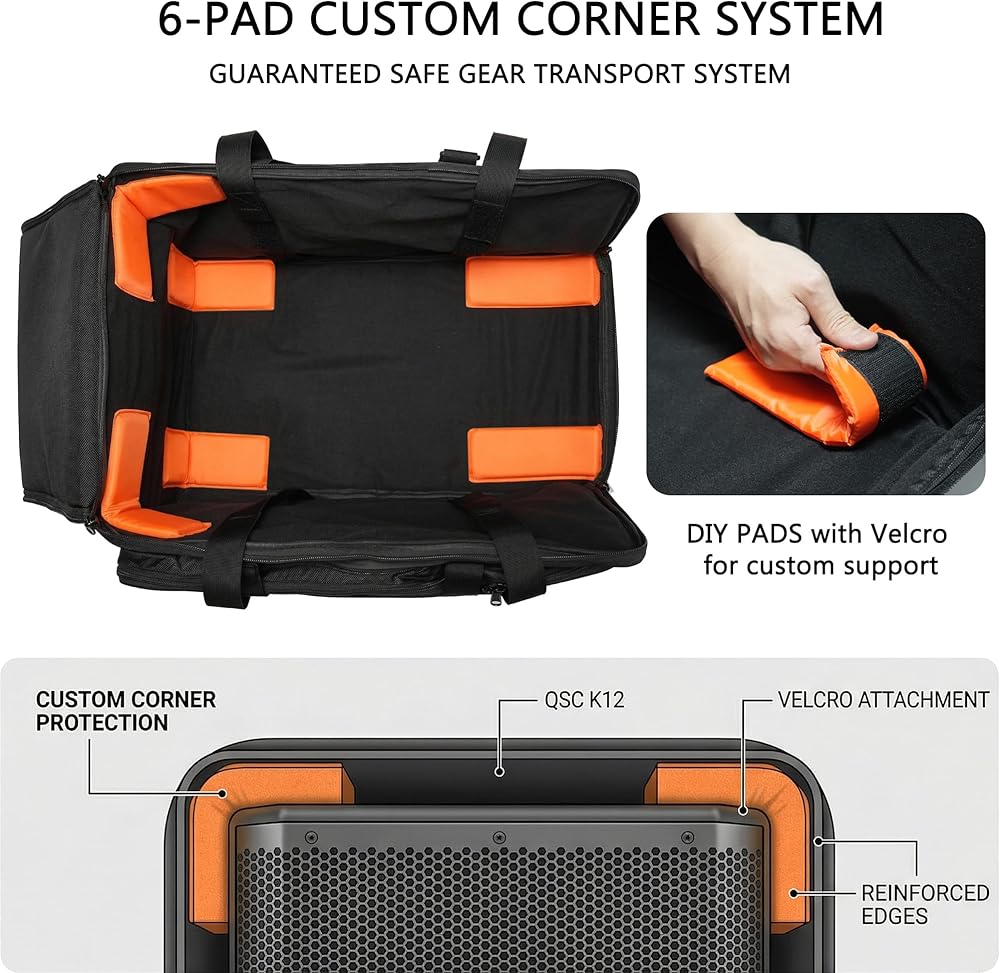 حقيبة مكبر صوت 1680D لـ QSC K12، حقيبة مكبر صوت عالية التحمل مقاس 12 بوصة مع حماية للزاوية مكونة من 6 وسادات، وجيوب ملحقة ووصول إلى المقبض العلوي، تناسب Yamaha DXR12 & EV ZLX-12P-G2، 24.5 × 15 × 15