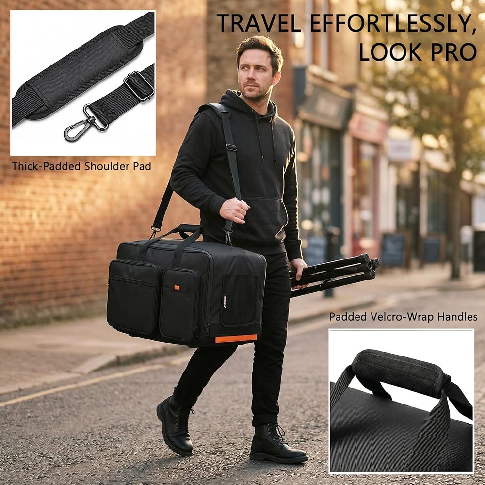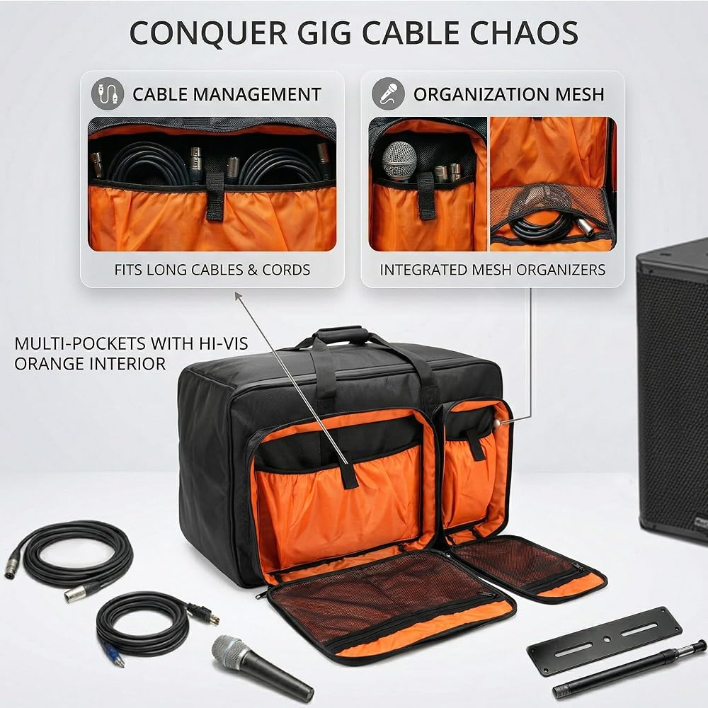 【High-Vis "No-Fumble" Accessory Storage】Conquer cable chaos on a dark stage. Two spacious front pockets feature integrated mesh organizers and a vibrant "Hi-Vis" orange lining. يضمن هذا التصميم عالي التباين إمكانية العثور على الكابلات والميكروفونات والمحولات السوداء في ثوانٍ، حتى في مناطق الكواليس ذات الإضاءة الخافتة، مما يحافظ على إعداد الحفلة الخاص بك منظمًا وخاليًا من التوتر.