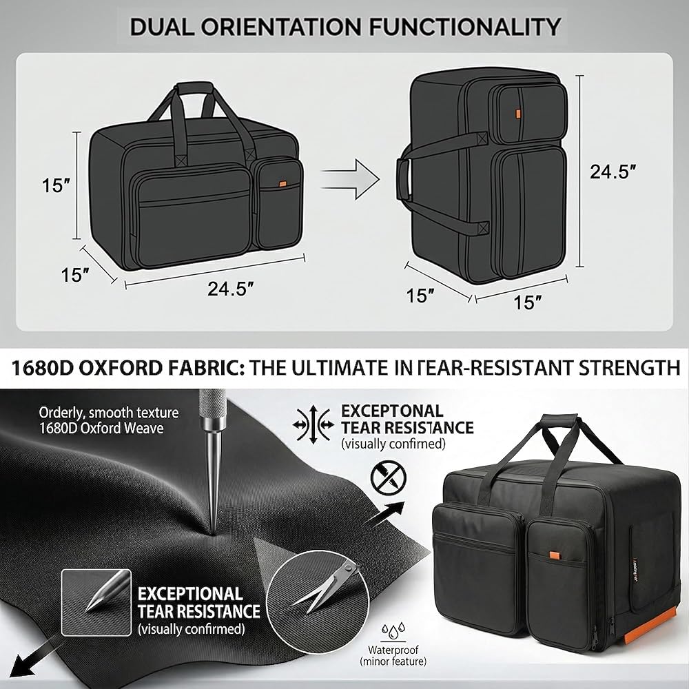 【بناء عالي التحمل 1680D جاهز للطرق】حماية احترافية للعب اليومي. مصنوعة من قماش أكسفورد عالي الكثافة 1680D فائق المتانة، هذه الحقيبة مقاومة للتمزق، وطاردة للماء، ومصممة لتحمل قسوة الطريق. تتميز بسحابات مقاومة للماء شديدة التحمل، وخطافات معدنية، وحزام كتف مريح مبطن سميك، فهي تجمع بين المظهر الاحترافي الأنيق والموثوقية طويلة الأمد.