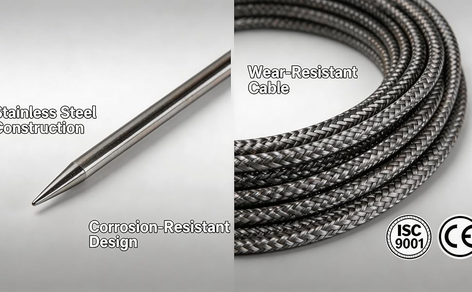 • يتم تغليف الكابل بطبقة خارجية مضفرة من الفولاذ المقاوم للصدأ مما يوفر مقاومة التآكل ومقاومة درجات الحرارة العالية ومقاومة التآكل مما يحسن بشكل كبير القوة الميكانيكية وعمر الخدمة. وهذا يضمن أن يظل المسبار الحراري 50360-K موثوقًا به حتى في ظل الاستخدام المتكرر وفي البيئات المعقدة.