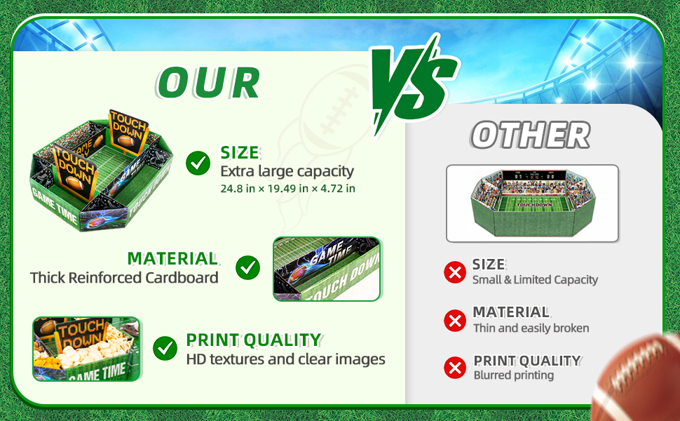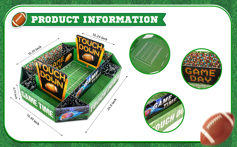 القطعة المركزية لحفلات كرة القدم: أكثر من مجرد صينية تقديم - إنها قطعة مميزة لديكورات حفلات كرة القدم الخاصة بك. استخدمه كعرض طعام عملي يمكن استخدامه كديكور احتفالي. مثالية لإعدادات الباب الخلفي وحفلات أعياد الميلاد والمناسبات ذات الطابع الرياضي.